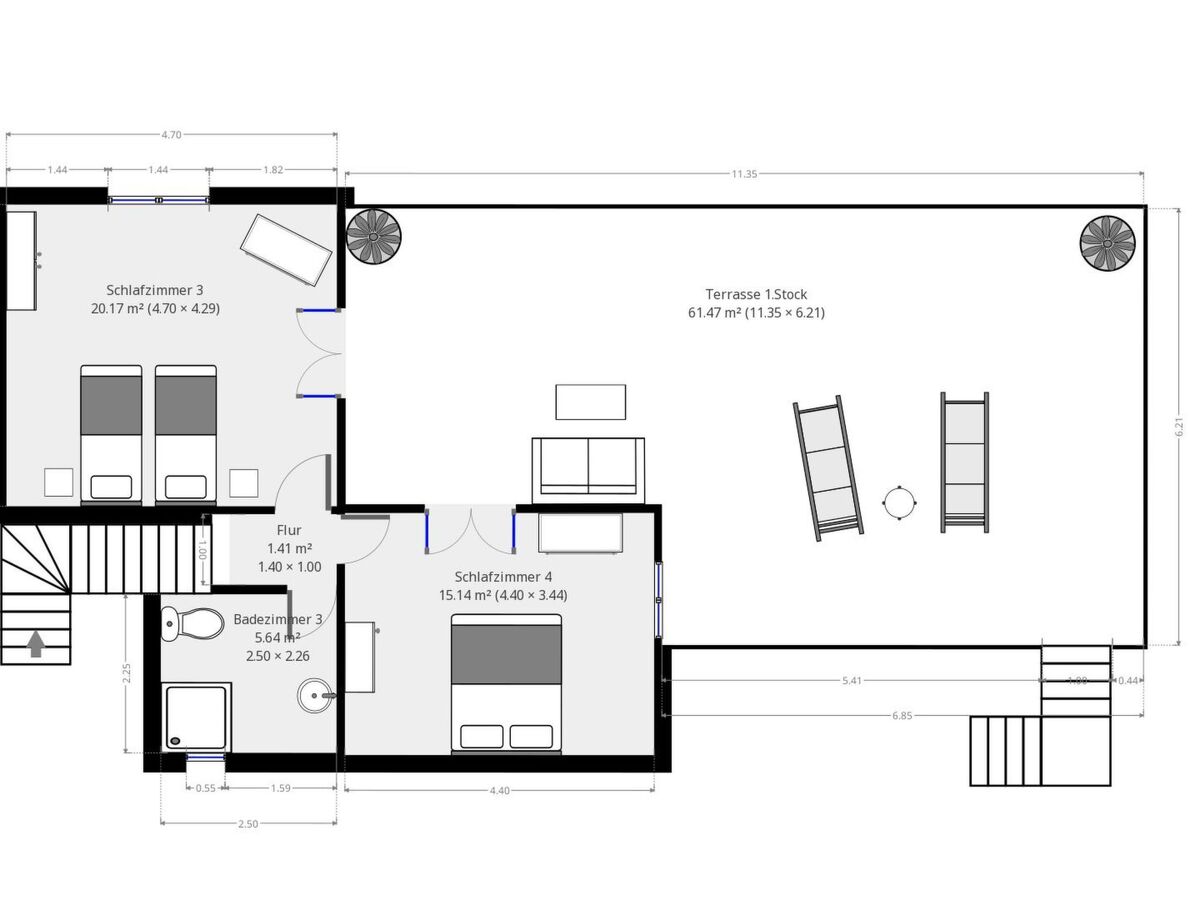 You can expect 150 m² of interior living space and a further 220 m² of living space spread over 4 terraces.