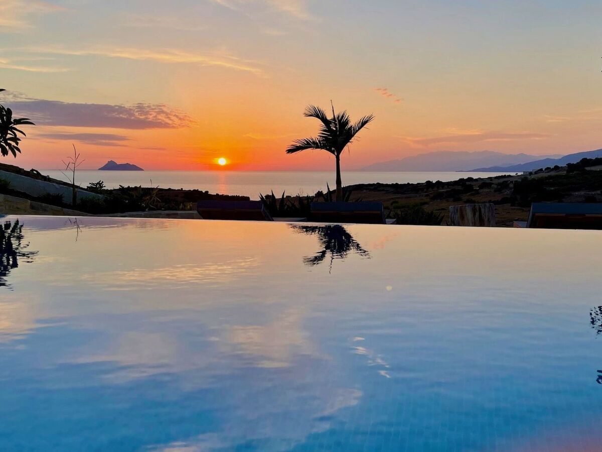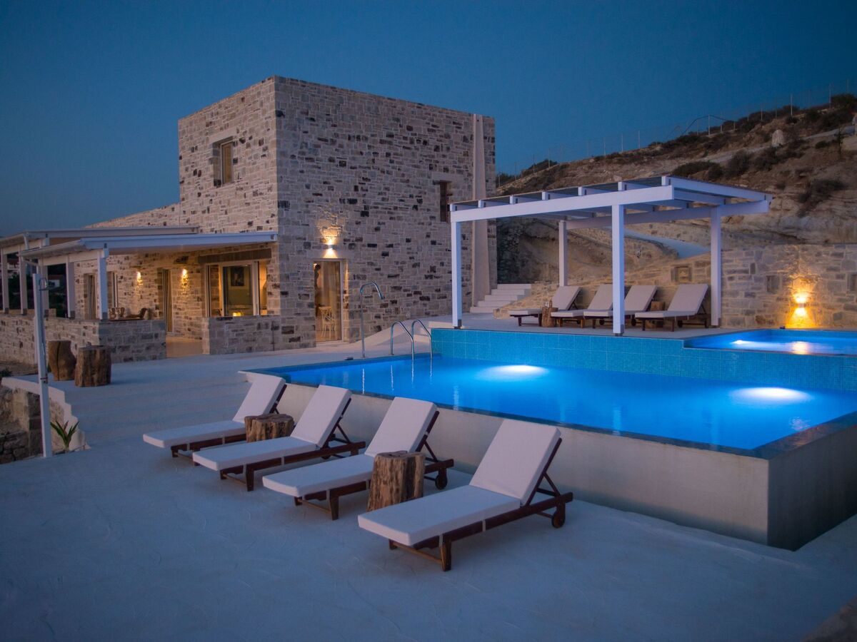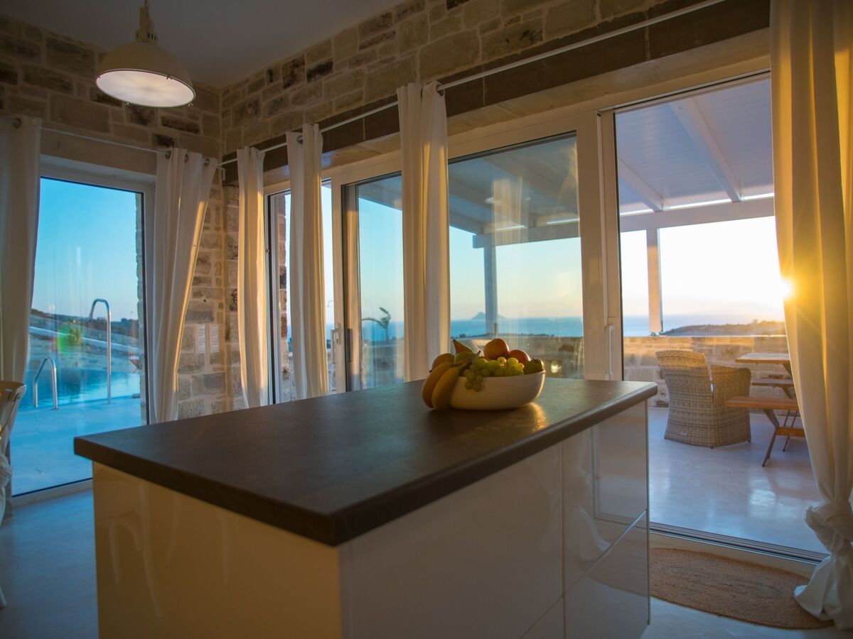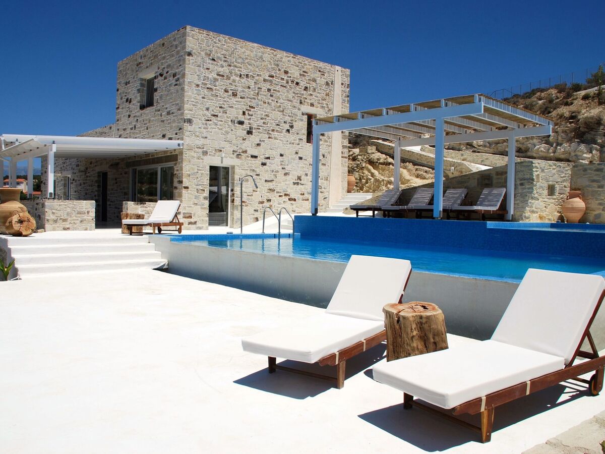 Villa Inia, beach house, natural stone villa in a top location with a fantastic view of the sunset in the Libyan Sea, olive groves and the Ida Mountains.