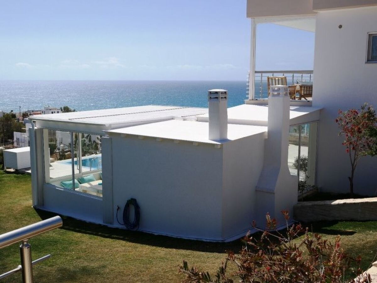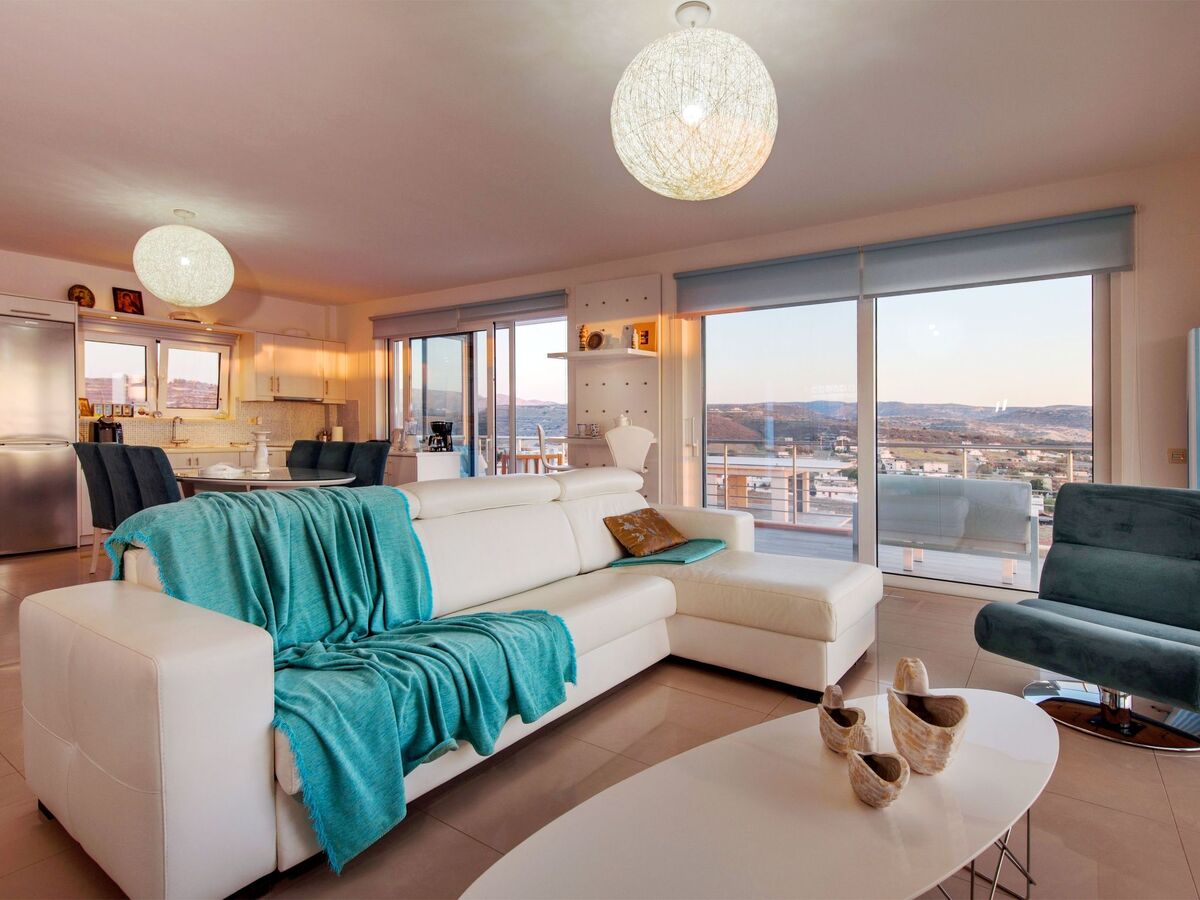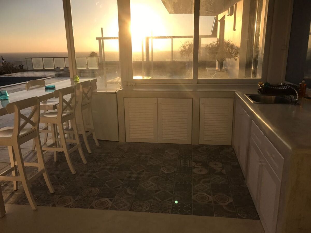 The villa boasts exclusive furniture in the open-plan living area with beautiful views of the countryside and the sea.
