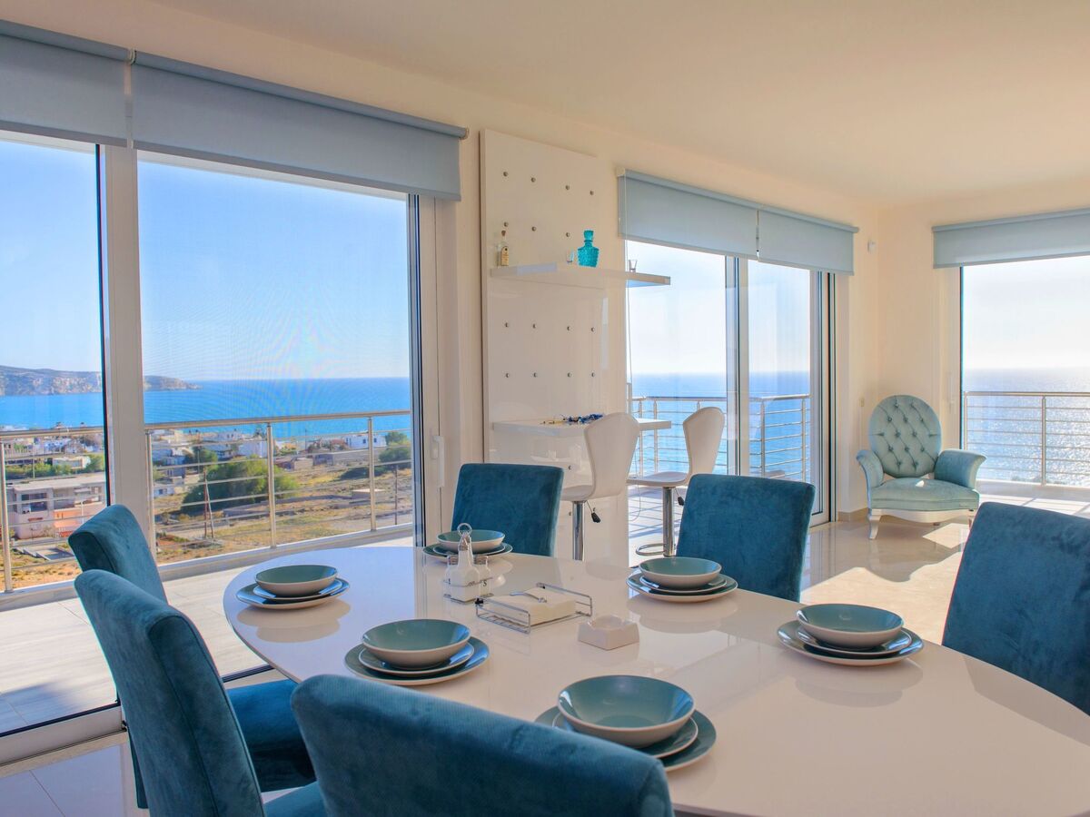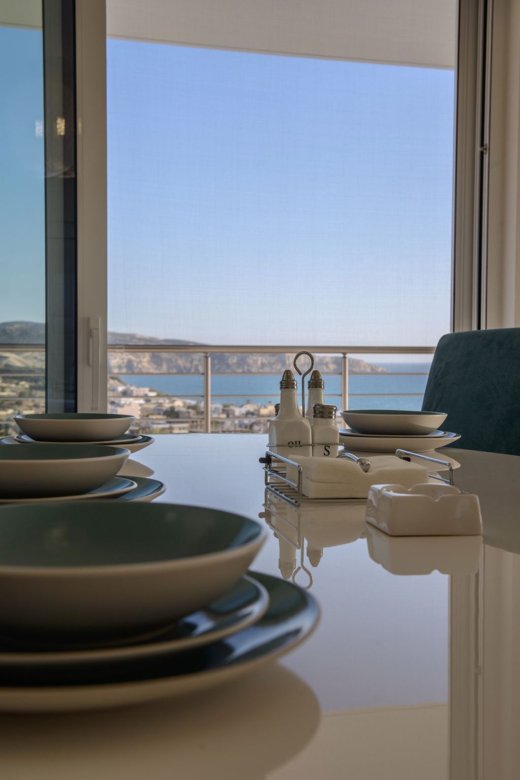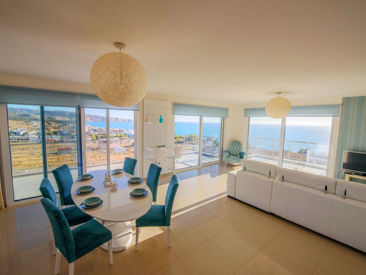 The villa boasts exclusive furniture in the open-plan living area with beautiful views of the countryside and the sea.