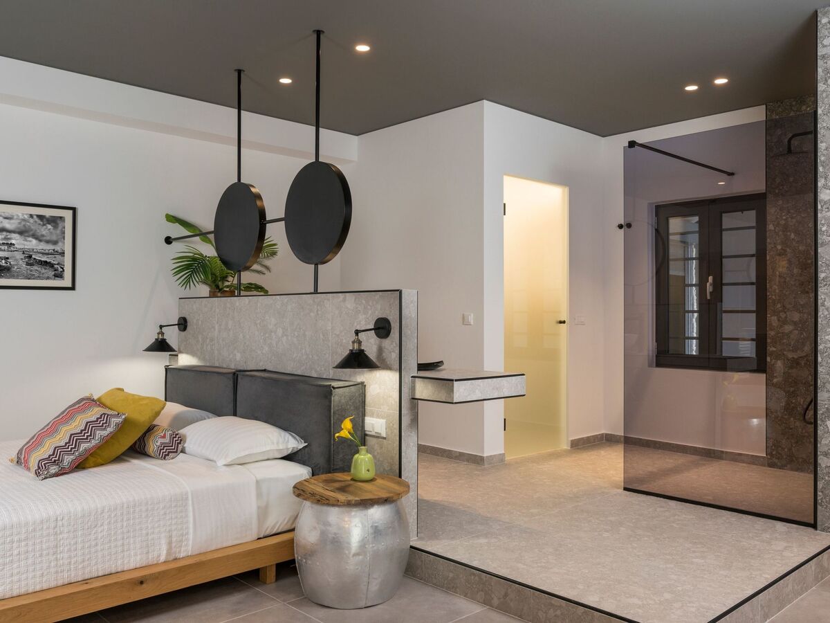 It offers a private heated pool with breathtaking views over the city of Chania.