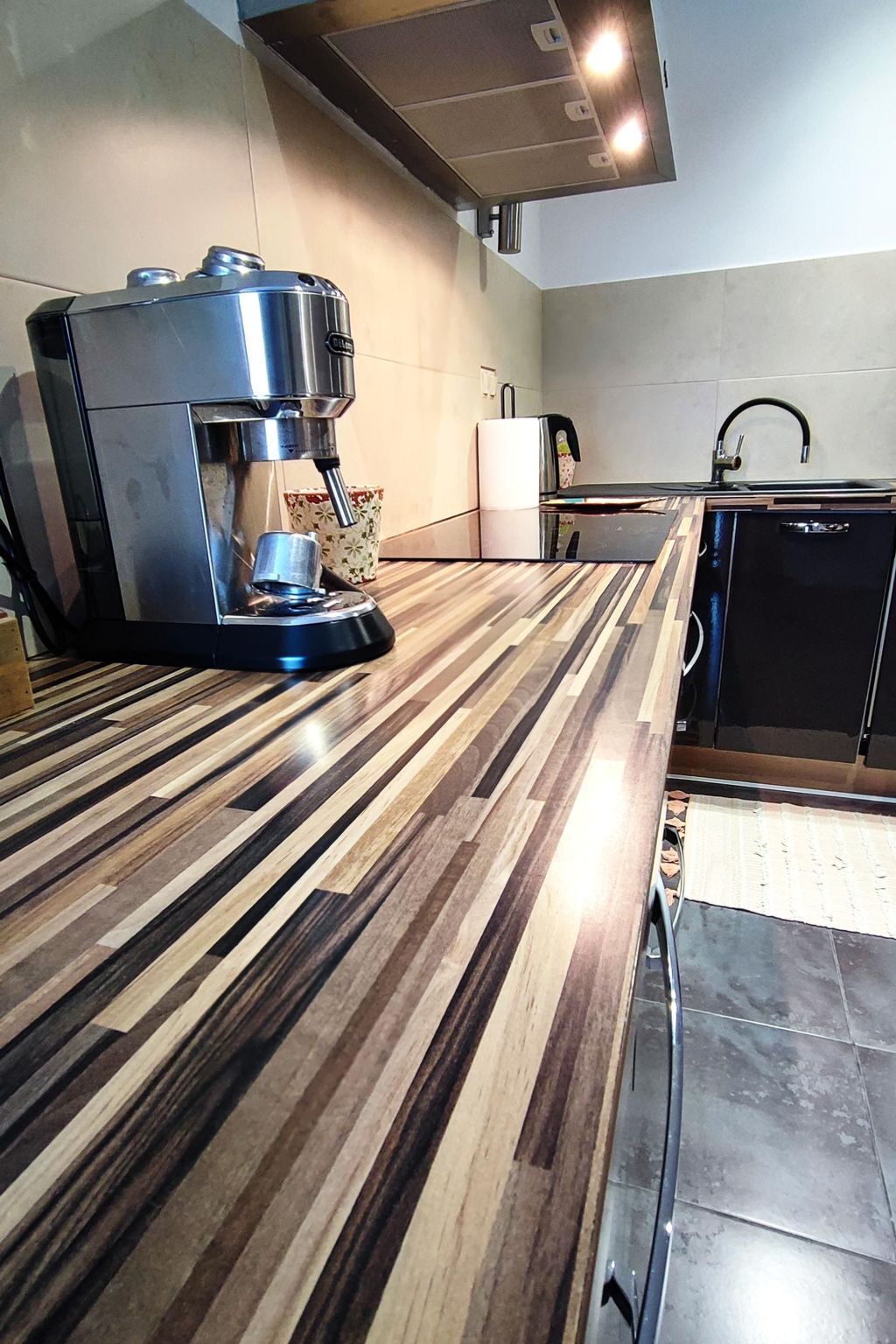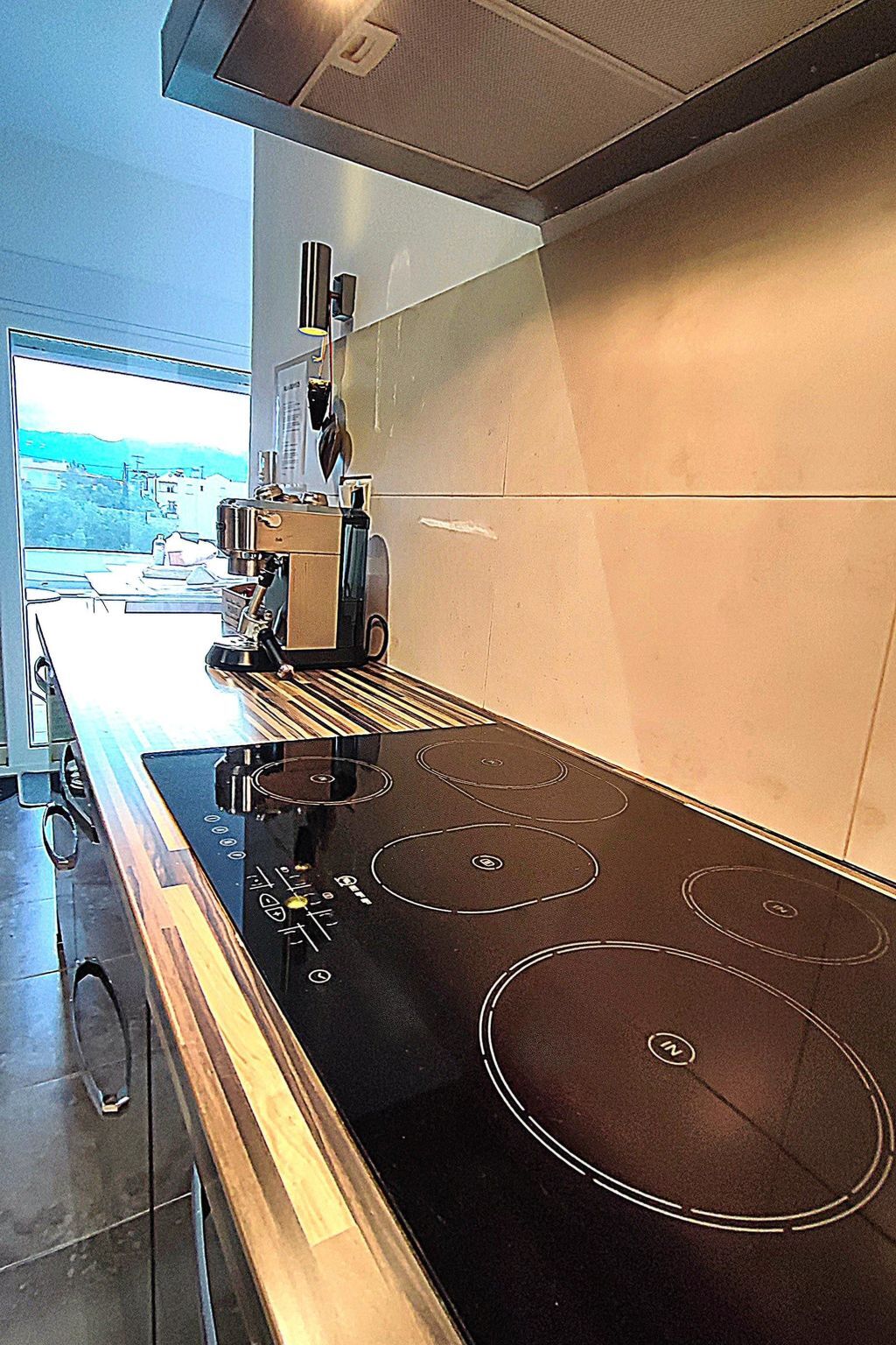 La cuisine conçue par Siemens est entièrement équipée pour satisfaire vos envies culinaires, offrant un four micro-ondes, un four, une plaque à induction, une machine à café et plus encore.