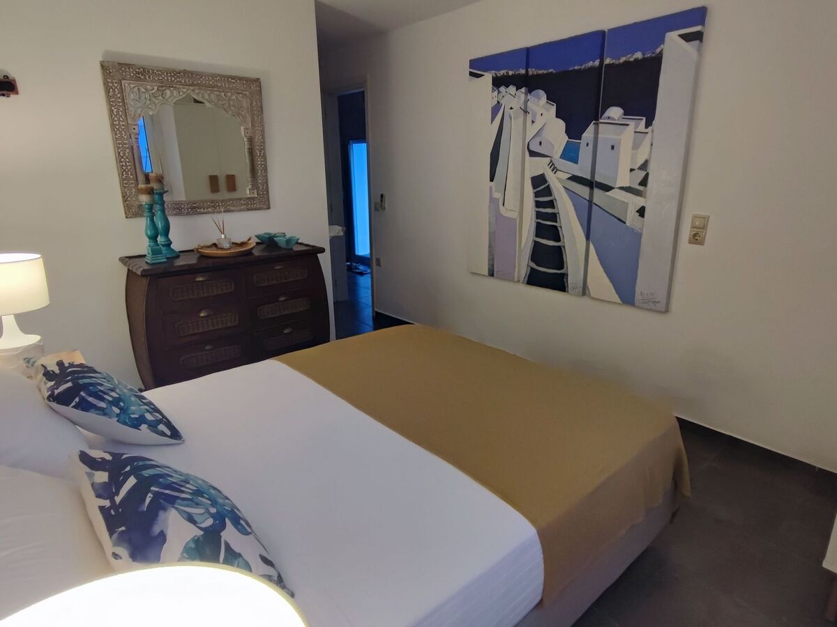 La villa bénéficie d'un emplacement privilégié à seulement 2 minutes en voiture de la plage de sable et du port animé d'Almyrida.