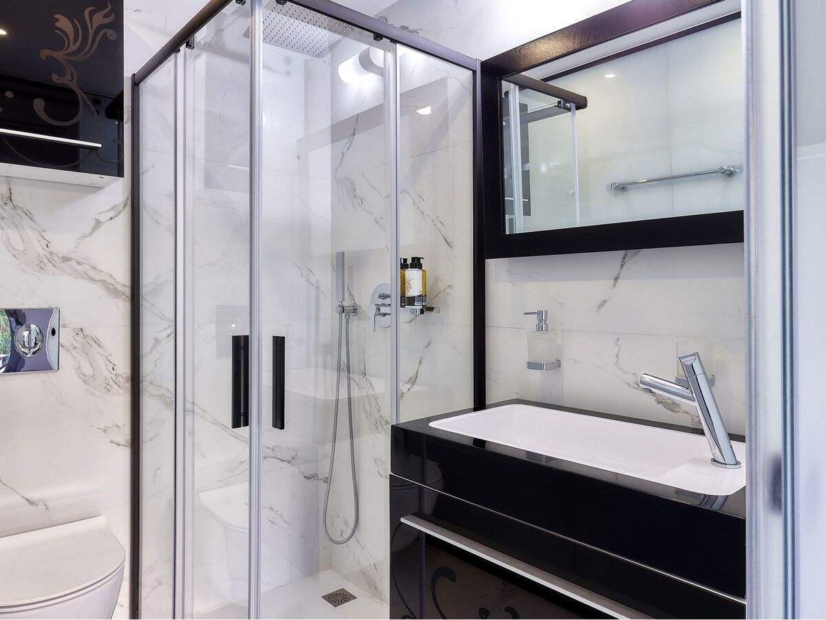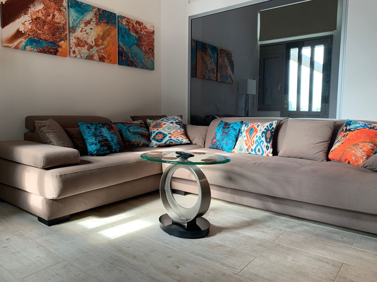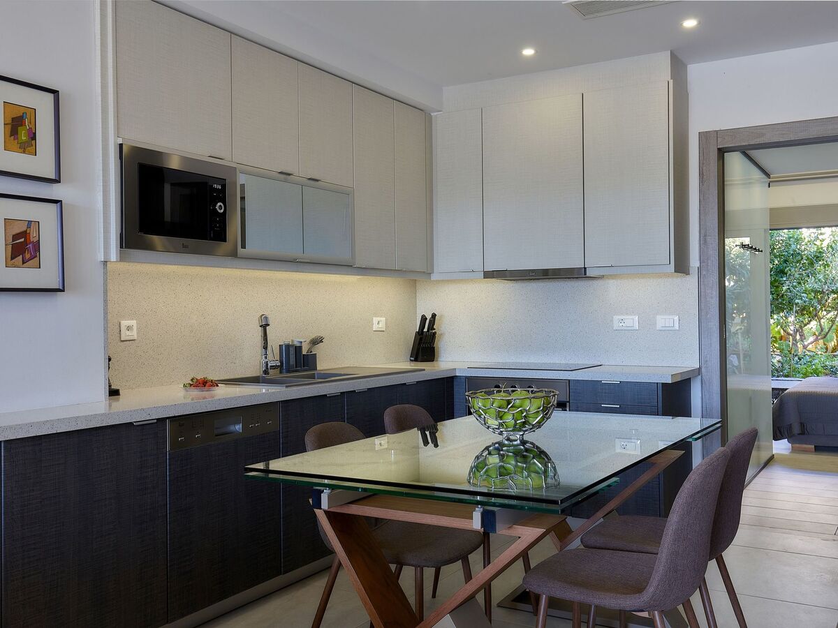 This luxury 5-bedroom, 4-bathroom rental is the entire ground floor, split into a 4 bedroom sea-front condo and a garden studio with its own living room and patio.