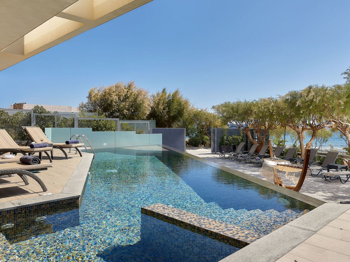 The outdoor area boasts panoramic sea views that blend into the local landscape and many unique architectural and environmentally friendly features throughout.