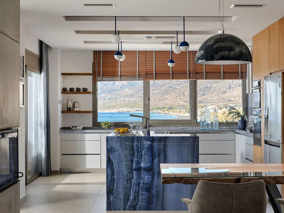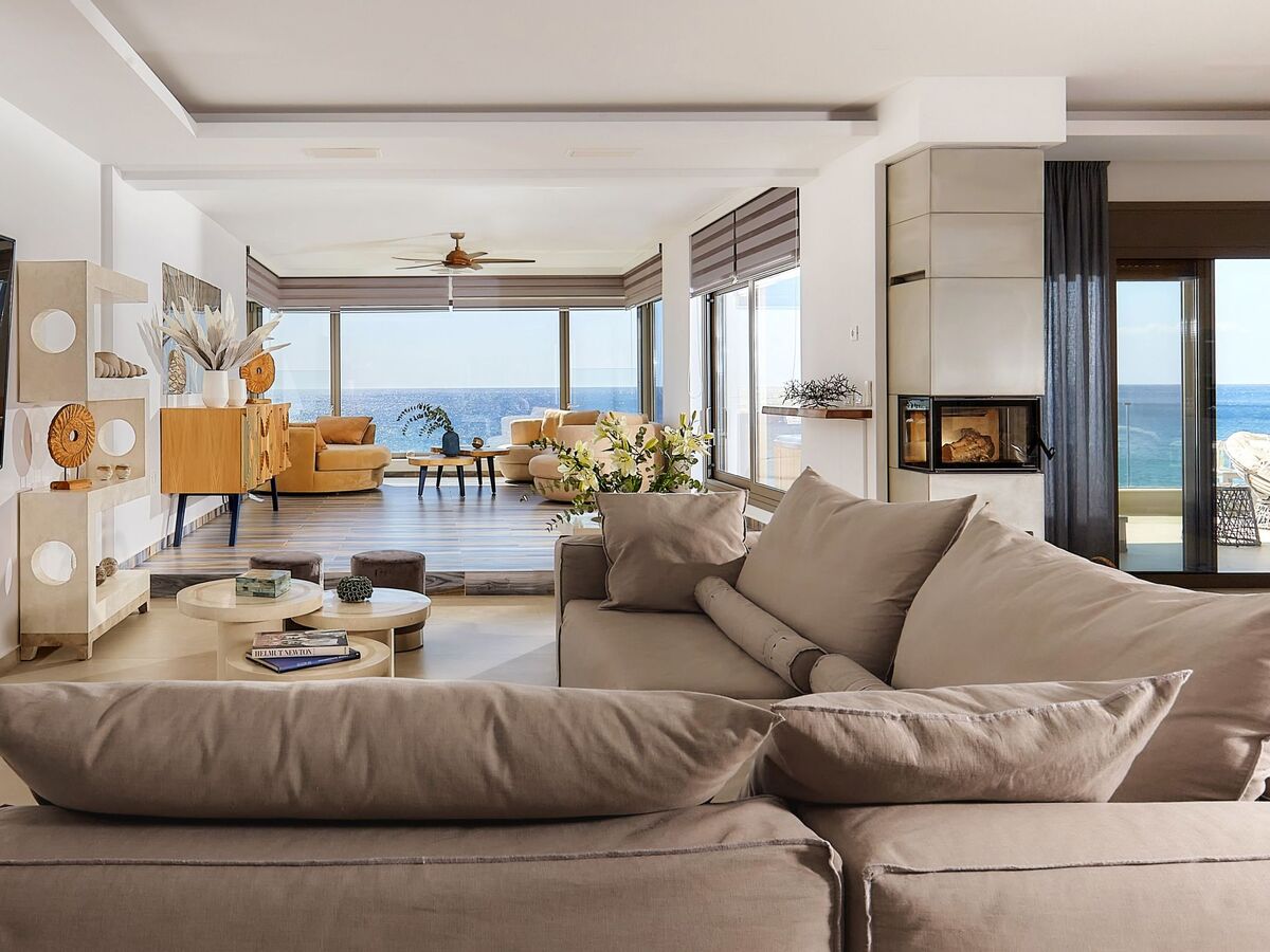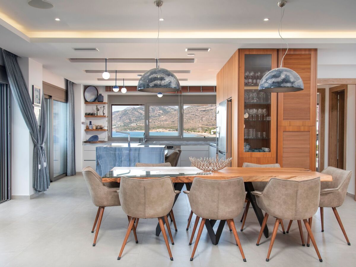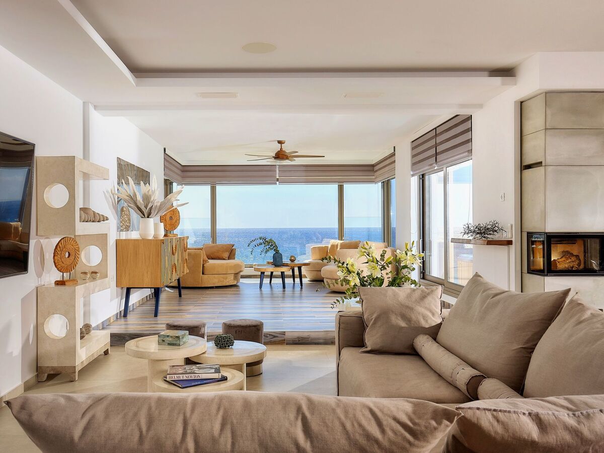 Set in Koutsourás, a quiet, agricultural village in South-Eastern Crete, this 10 bedroom Jupiter Moons villa is a ~450 square meters brand new, private, waterfront estate that provides luxurious accommodation with spectacular views of the southern Crete landscape, moon and sunset.