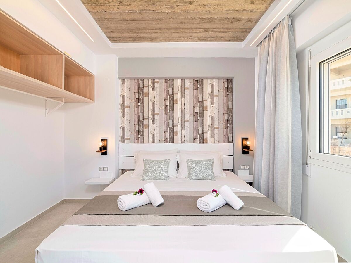 Enjoy the timeless Cretan setting and refined accommodation with each room mirroring your relaxing nest.In an ideal location, just two minutes from Kavros sandy beach and few minutes’ drive Kournas Lake.