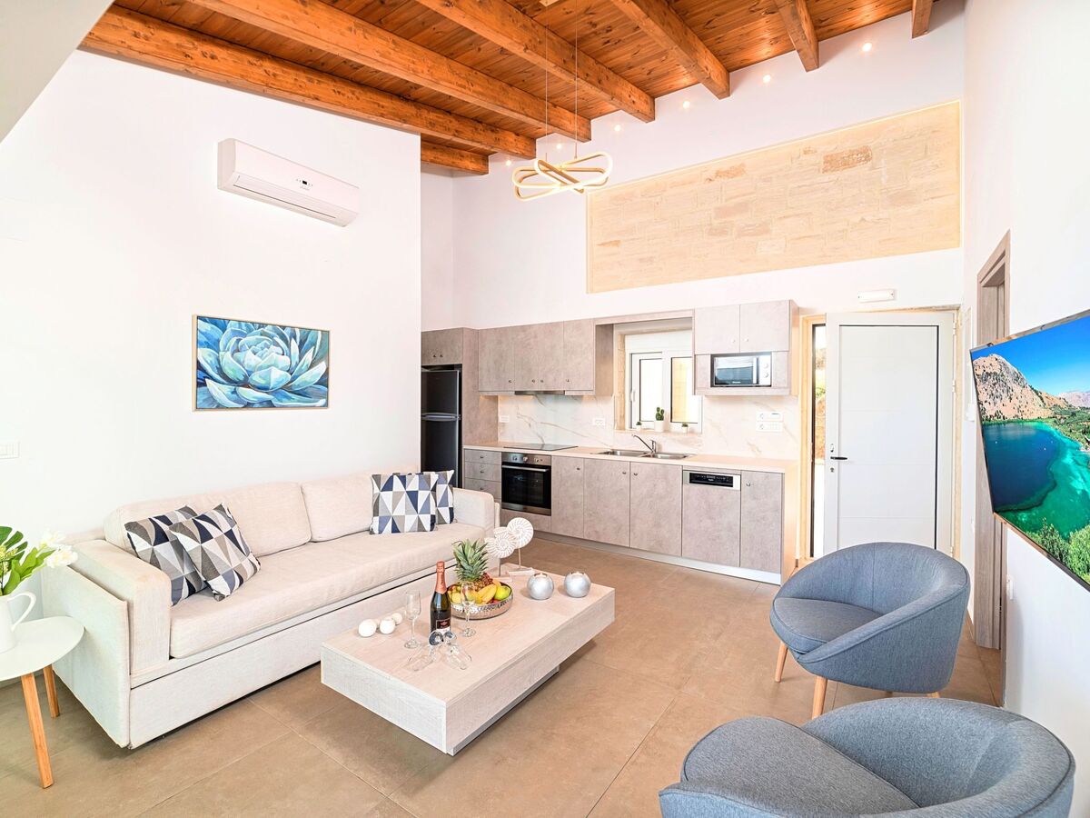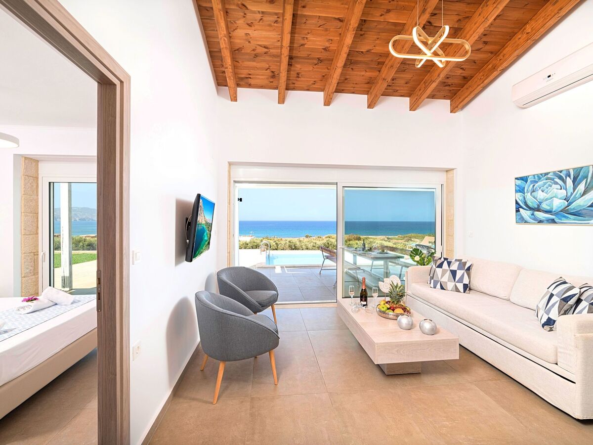Complete with comfortable furniture, modern kitchen facilities, fully air-conditioned, with sea view oriented towards the Aegean Sea and Cretan renowned sunset.
