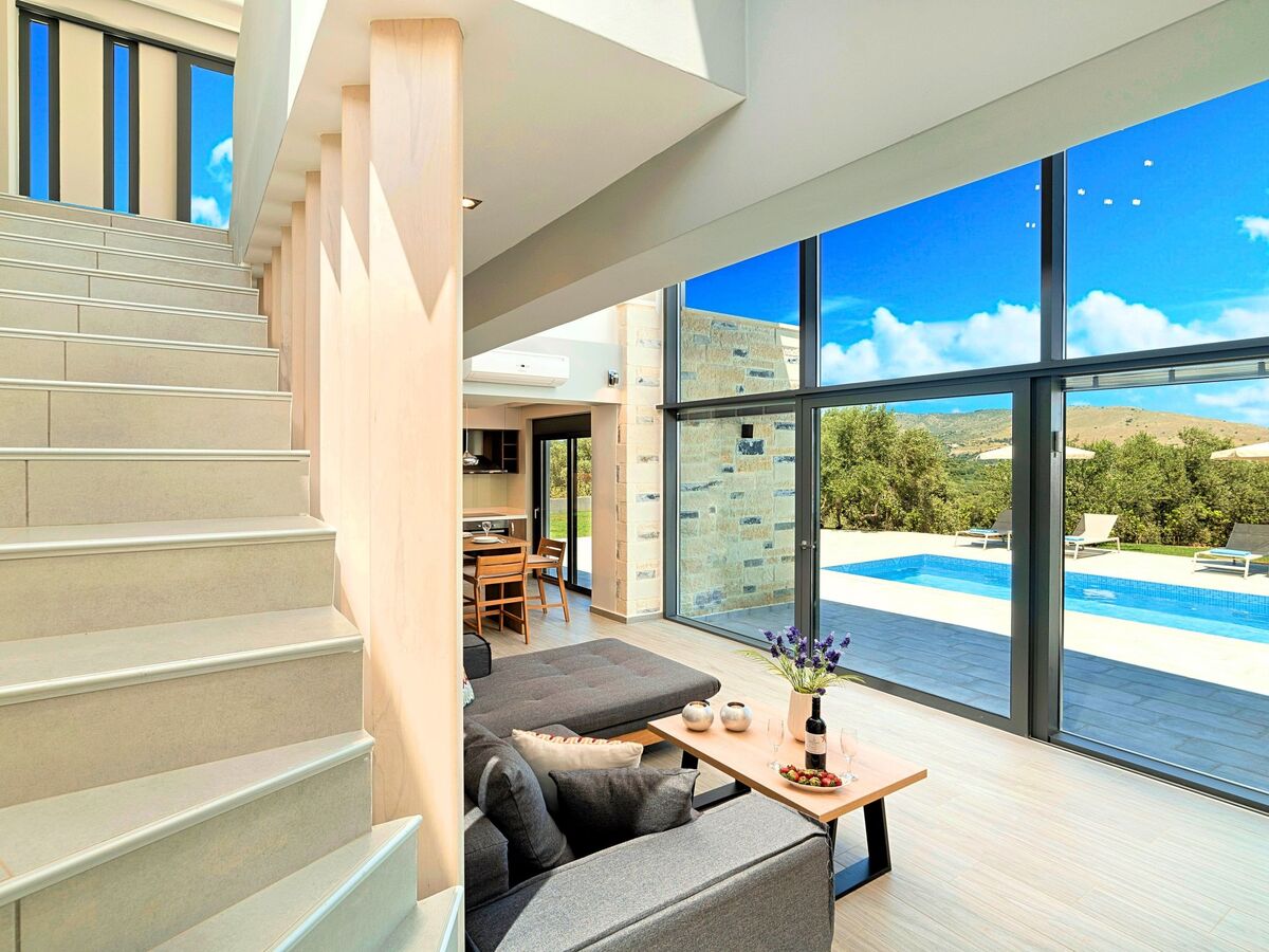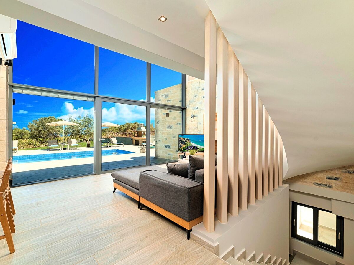 Nuzzled in an olive grove, above the sandy beach of Georgioupolis in Crete, Moon Light Villas captures the essence of relaxing and comfort living.Villa’s complex is built amphitheatrically with amazing sea views.These elegant Villas evokes the island’s Mediterranean spirit and cosmopolitan charm in its elegant environs while ensuring a holiday beyond comparison.Surrender to the temptations of refinement at one of the most enchanting Cretan Villas and take in the splendid panoramic views to the emerald Cretan Sea.Find your peace and quiet and unwind in a haven of bliss and tranquility.Hide away in the calm of summer and elevate your senses at one of the most remarkable Villas with private pool.Each One of Three Villas can accommodate up to 15 guests ( 10 in the bedrooms) and 5 more at the sofas in bedrooms or at the lower level living room.