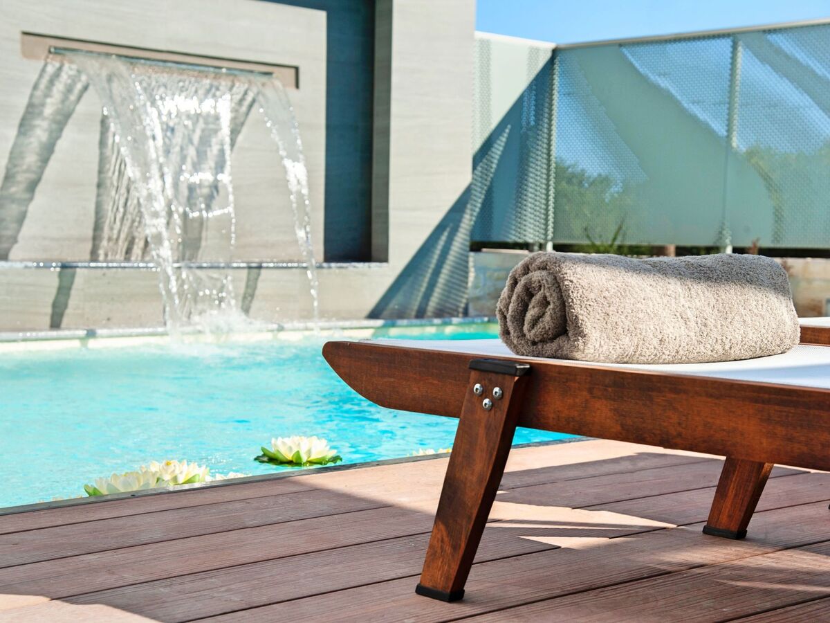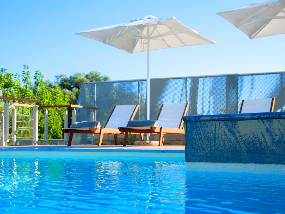 ● Private Swimming pool 20sqm ● Jacuzzi in the pool for 2 quests ● Waterfall for neck hydromassage ● Sun lounge area with sun beds under a pergola.