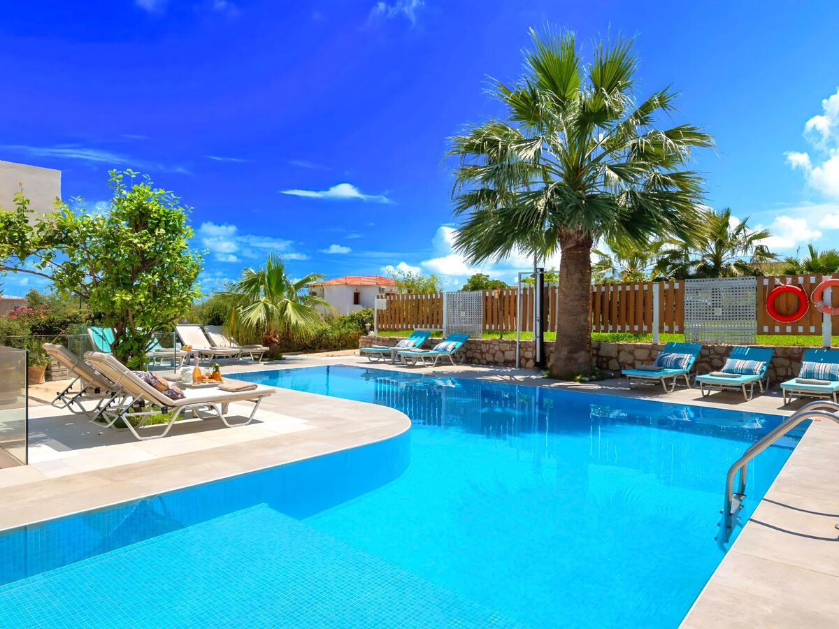 Just a 5-minute walk from the famous sandy Kavros beach, Island Suites Villa, Crete is one building complex of 7 apartments, offering a combination of beautiful architecture, all earth washed color walls, open spaces and beautiful gardens.