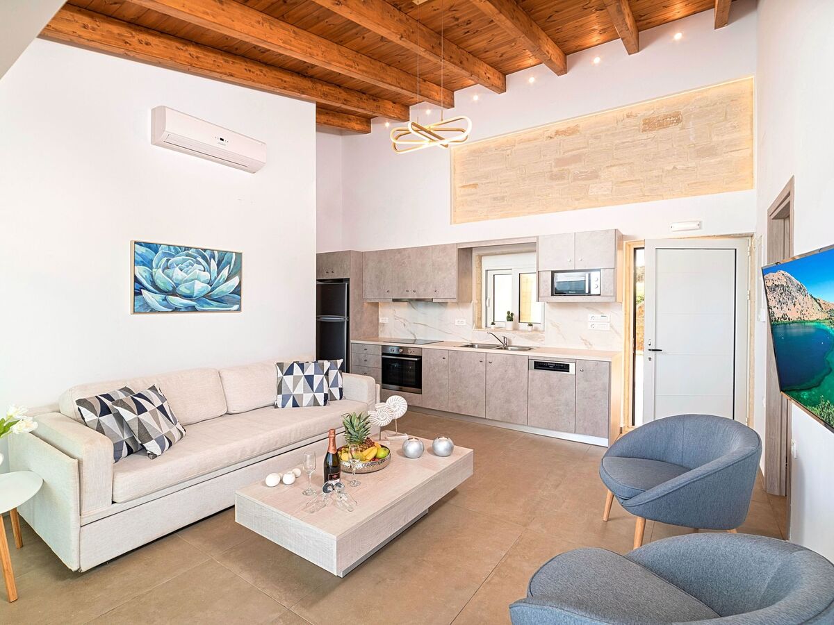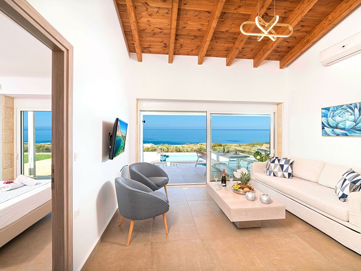 Complete with comfortable furniture, modern kitchen facilities, fully air-conditioned, with sea view oriented towards the Aegean Sea and Cretan renowned sunset.