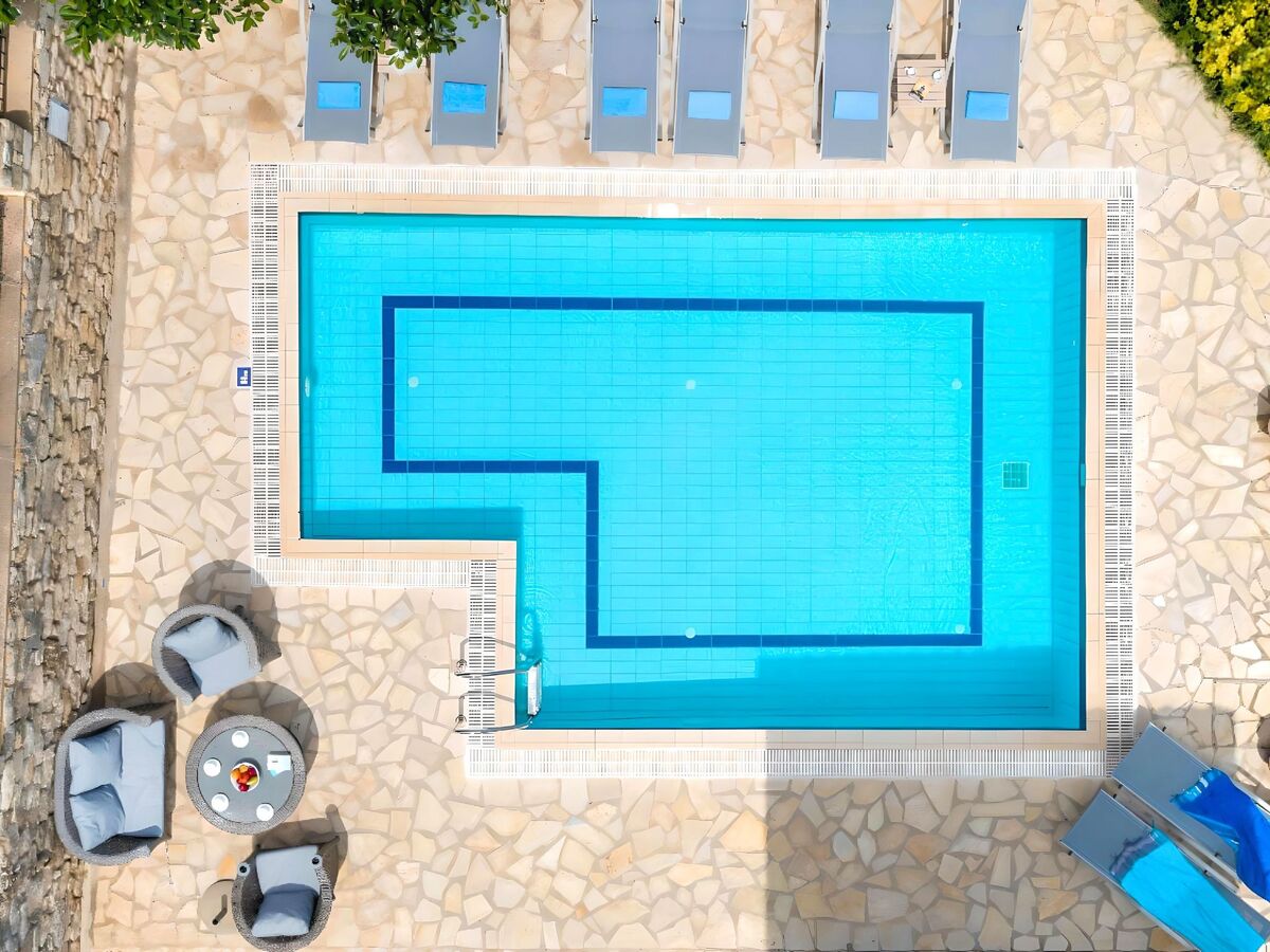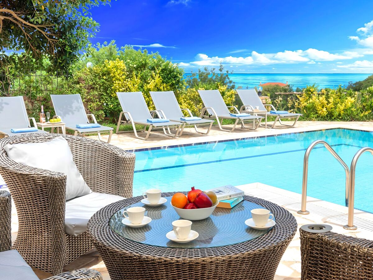 An ideal getaway for those seeking romantic accommodation in Crete, Mare Blue Villa is a picturesque villa surrounding by gardens, refreshing private pools offering stunning views to the endless blue of Cretan sea.