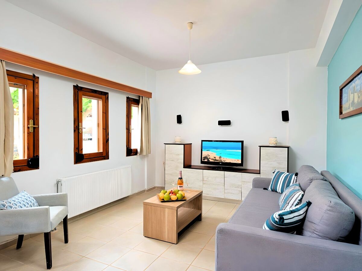 Just a 5-minute walk from the famous sandy Kavros beach, Island Villa, Crete is one building complex of 7 apartments, offering a combination of beautiful architecture, all earth washed color walls, open spaces and beautiful gardens.