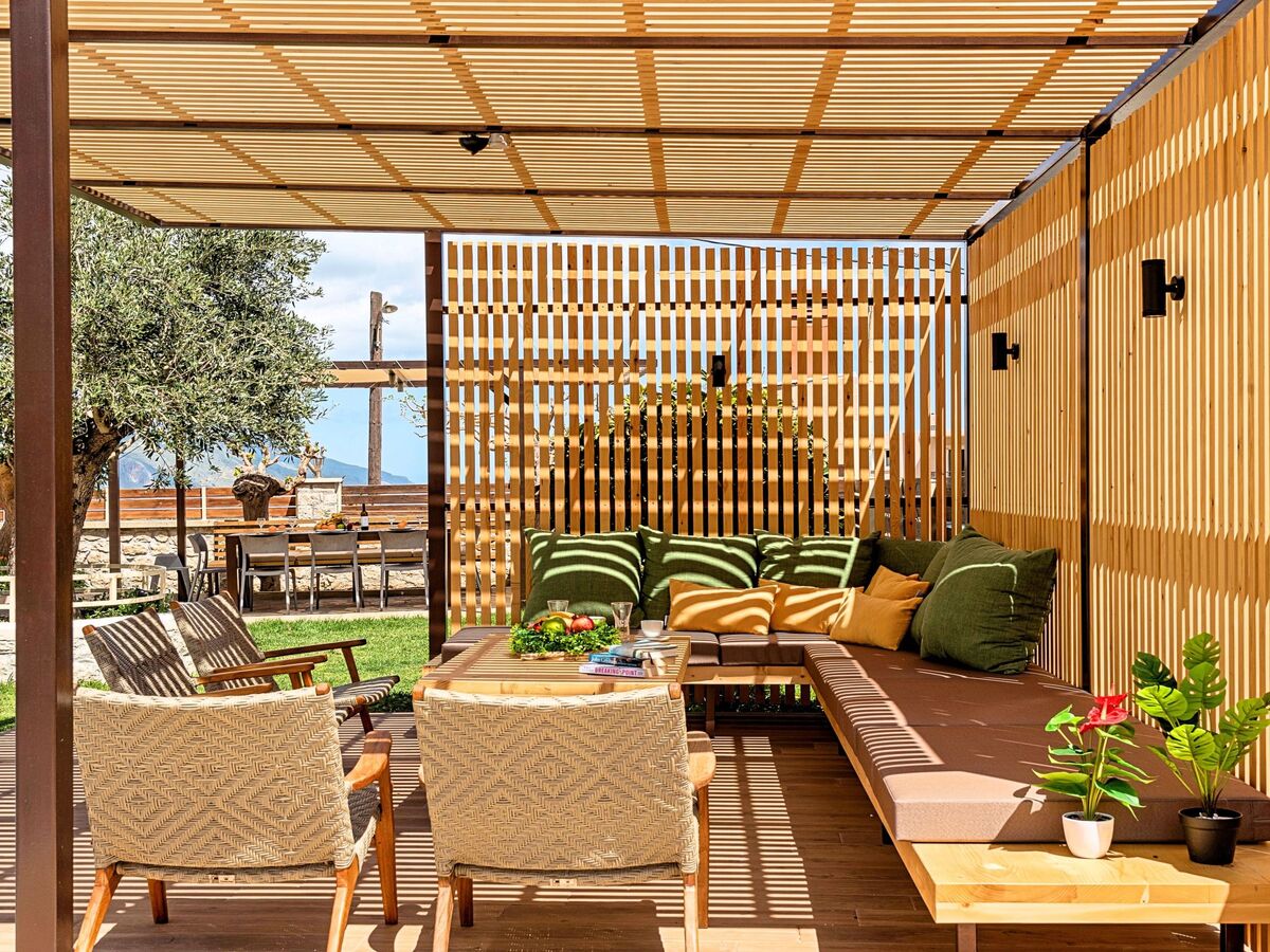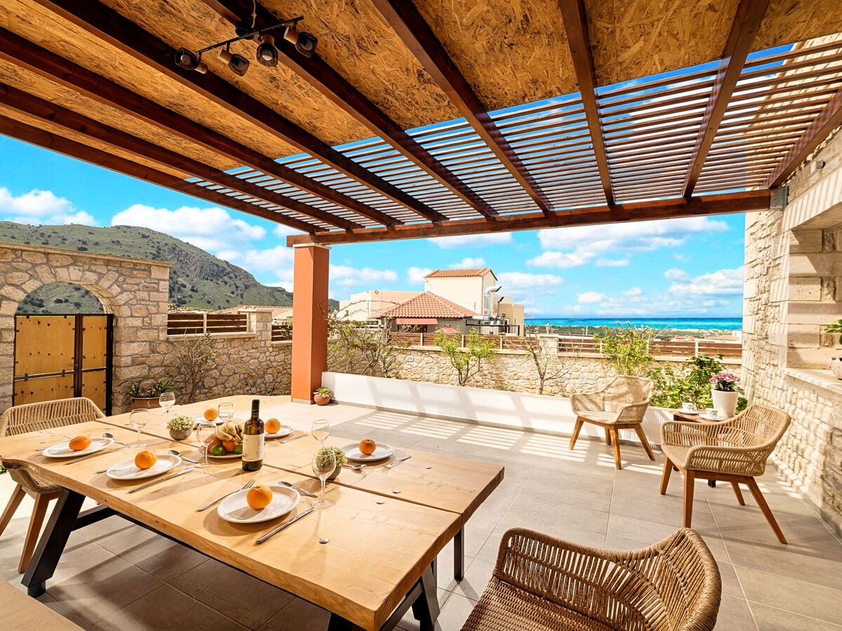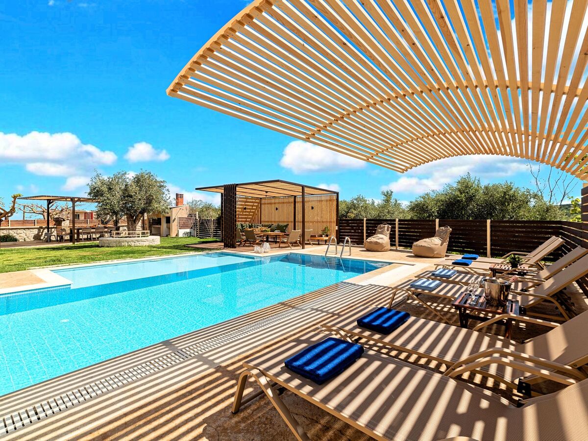 The pool and garden offer places of cool shade and radiant light as well as privacy and views.Facilities and services.Light and views of green and blue filter through the villas' windows.Cretan Sunrise Villa is a 200 sqm, two-storey villa surrounded by a large 1.6-hectare plot, spacious terraces with enchanting views and a beautiful swimming pool.The living and dining area combines simplicity and opulence.