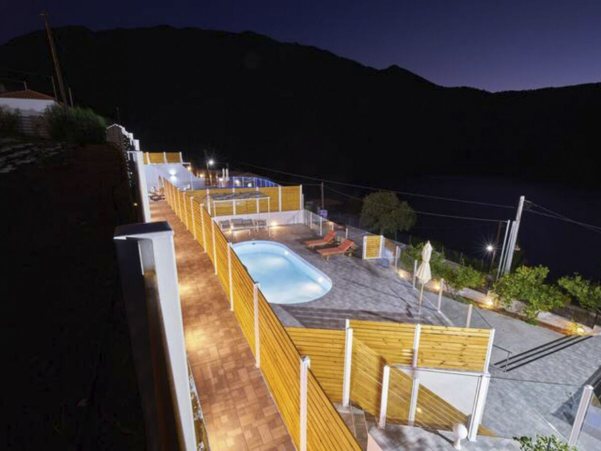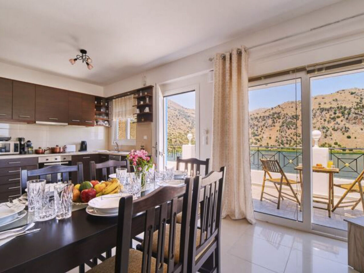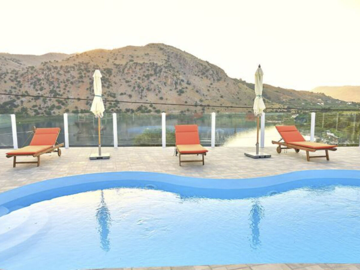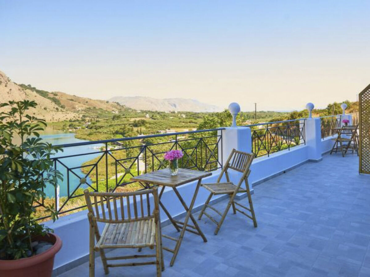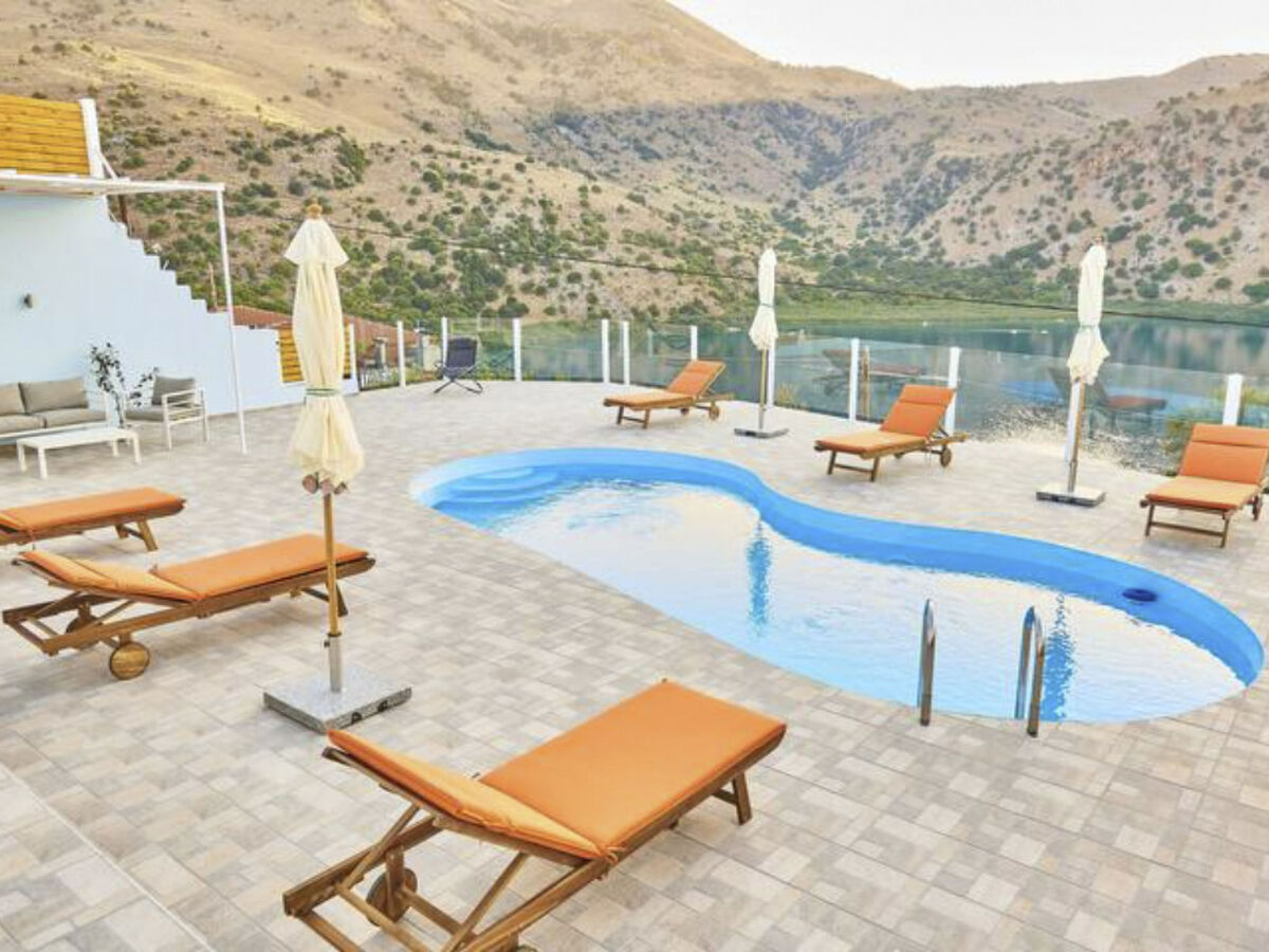 The villa is located by Lake Kournas, a unique freshwater lake in Crete, and is within driving distance of other notable destinations.