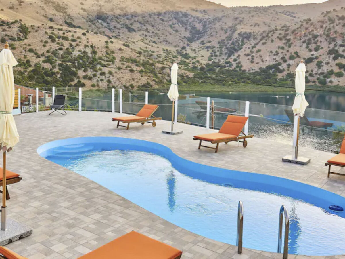 The villa is located by Lake Kournas, a unique freshwater lake in Crete and is in driving distance of other notable destinations.