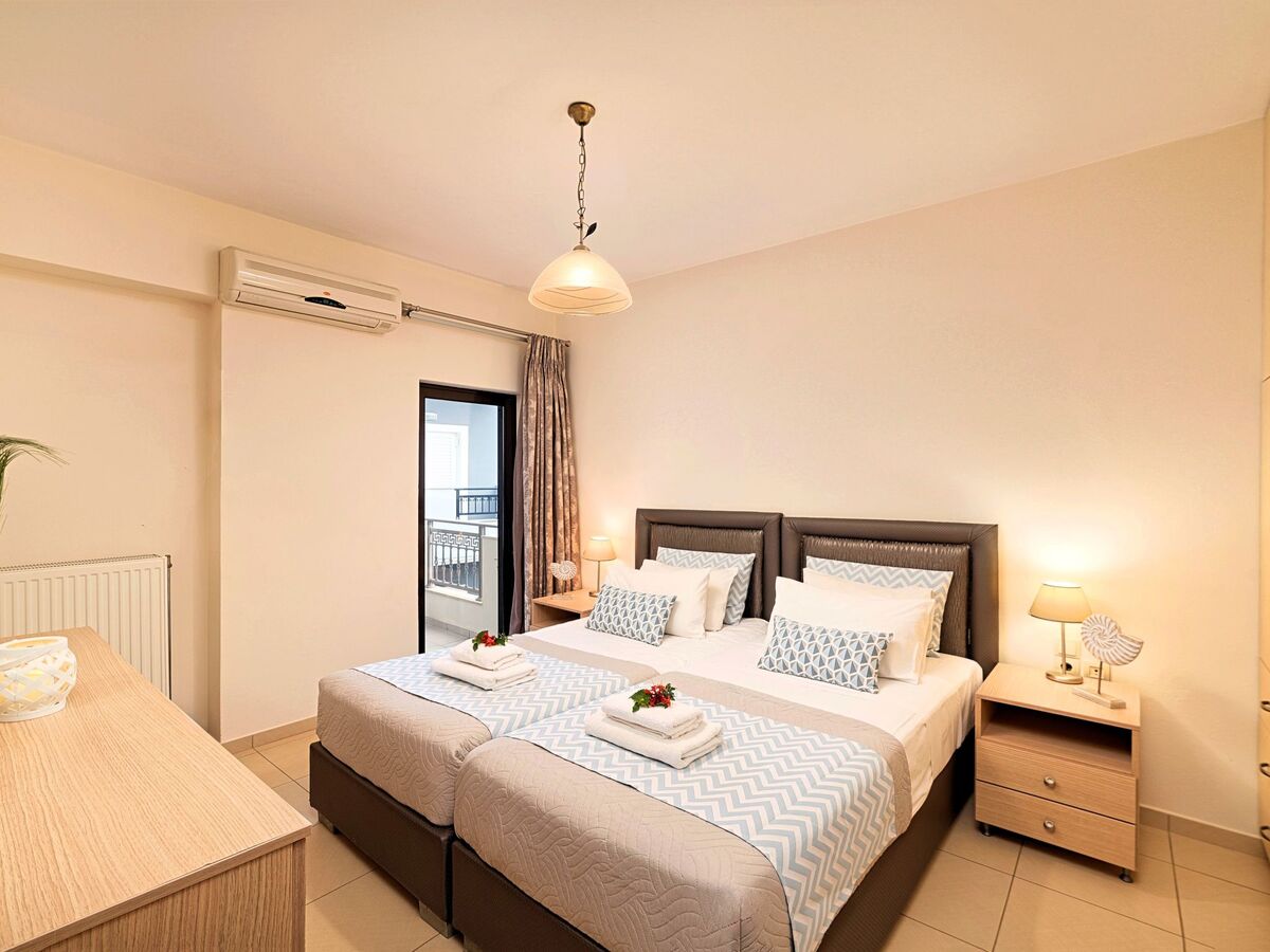 ● A Large bedroom with two single beds (pushed together), air-condition and balcony