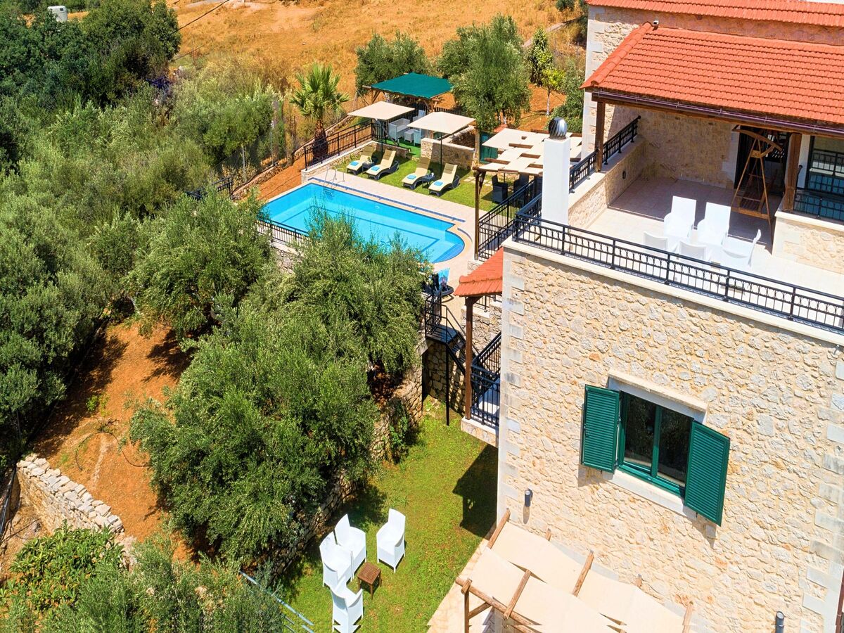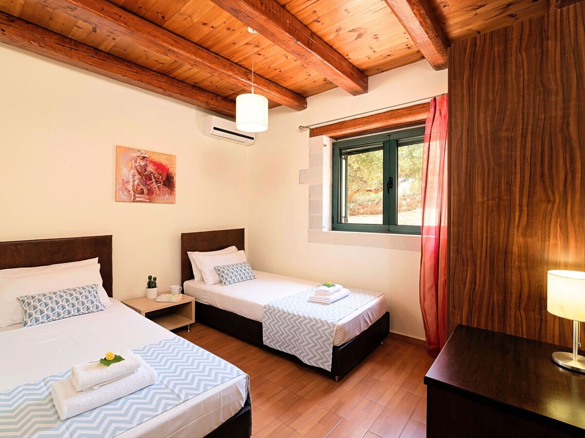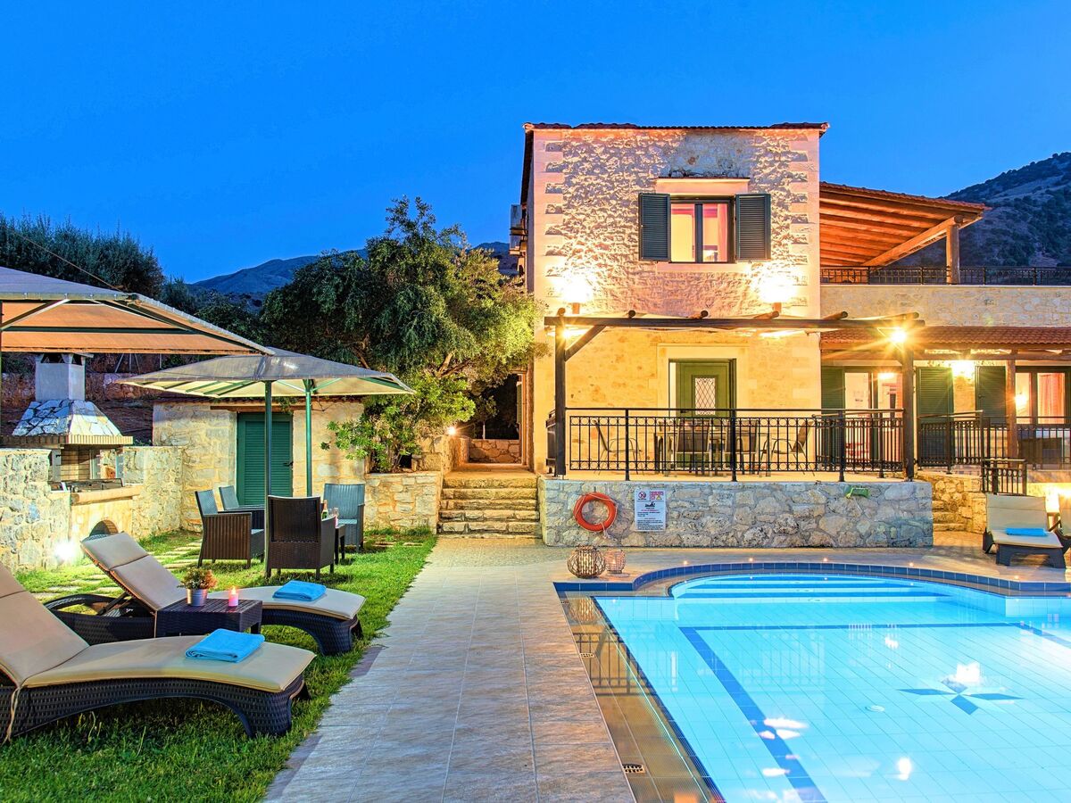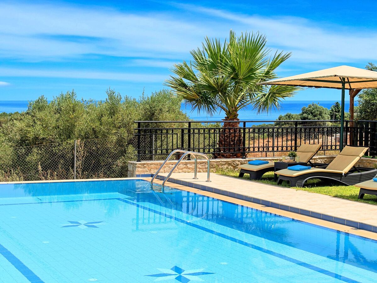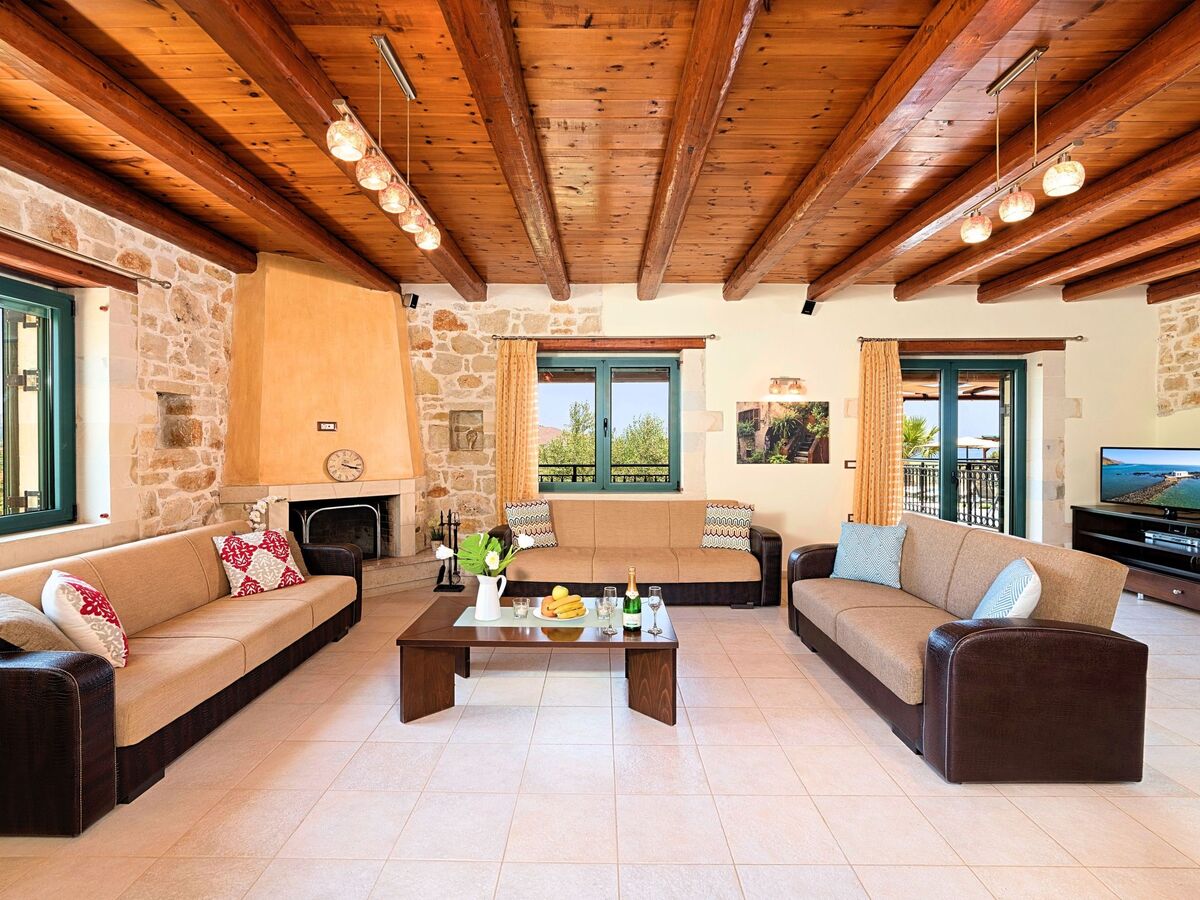 The interior is spacious and very bright while maintaining a cozy feel.Enjoy a magnificent pool area with splendid views of the Aegean Sea and the skyline of Crete.The villa affords privacy blended with sumptuous comfort set amidst a rural setting.Villa Stelios can accommodate up to 12 guests (10 in the bedrooms) and 2 more at the sofas in living room.The villa offers 5 Bedrooms, 3 Bathrooms, 220sqm Living Area, 6.000sqm plot surface, private pool 60sqm