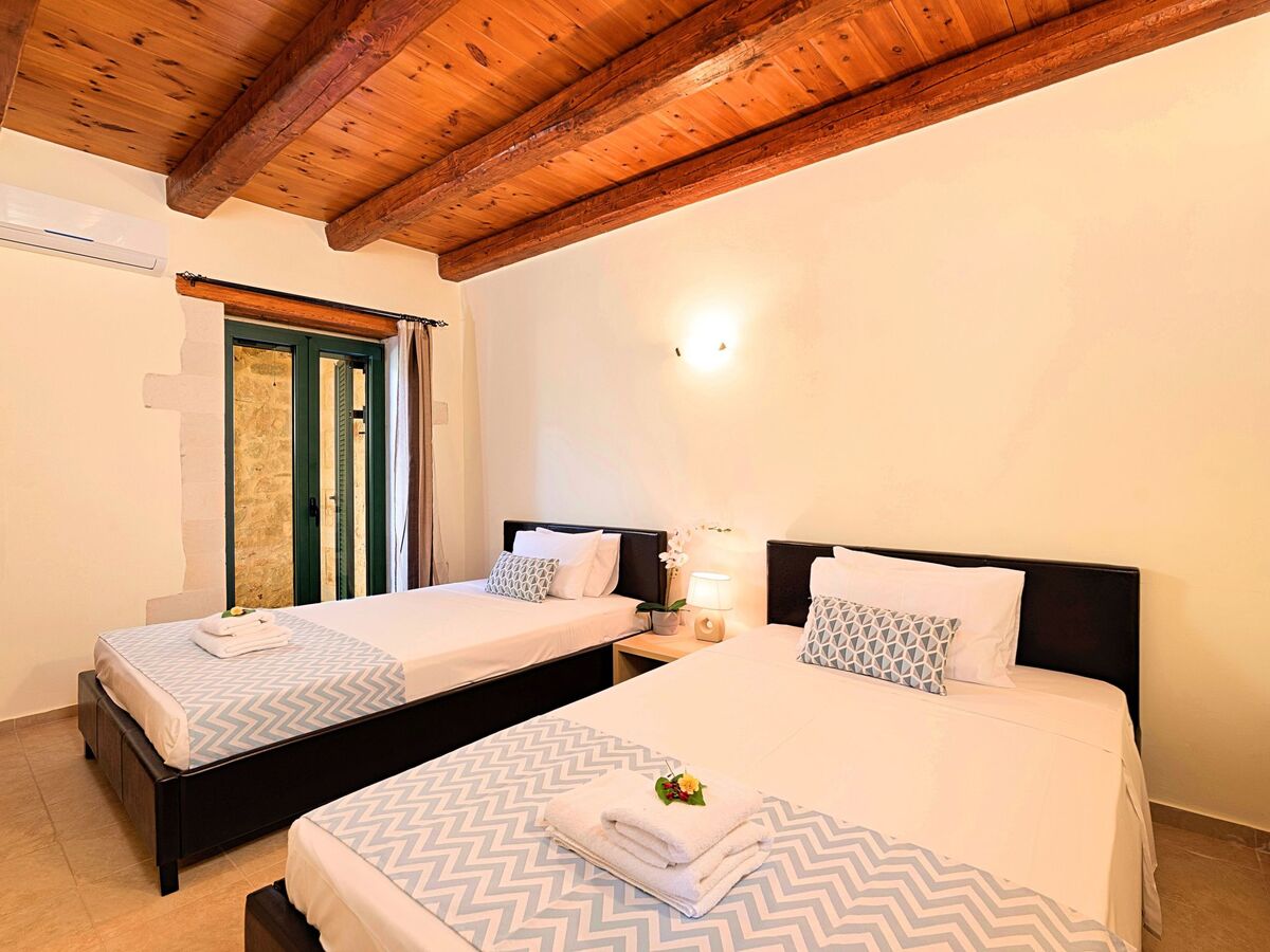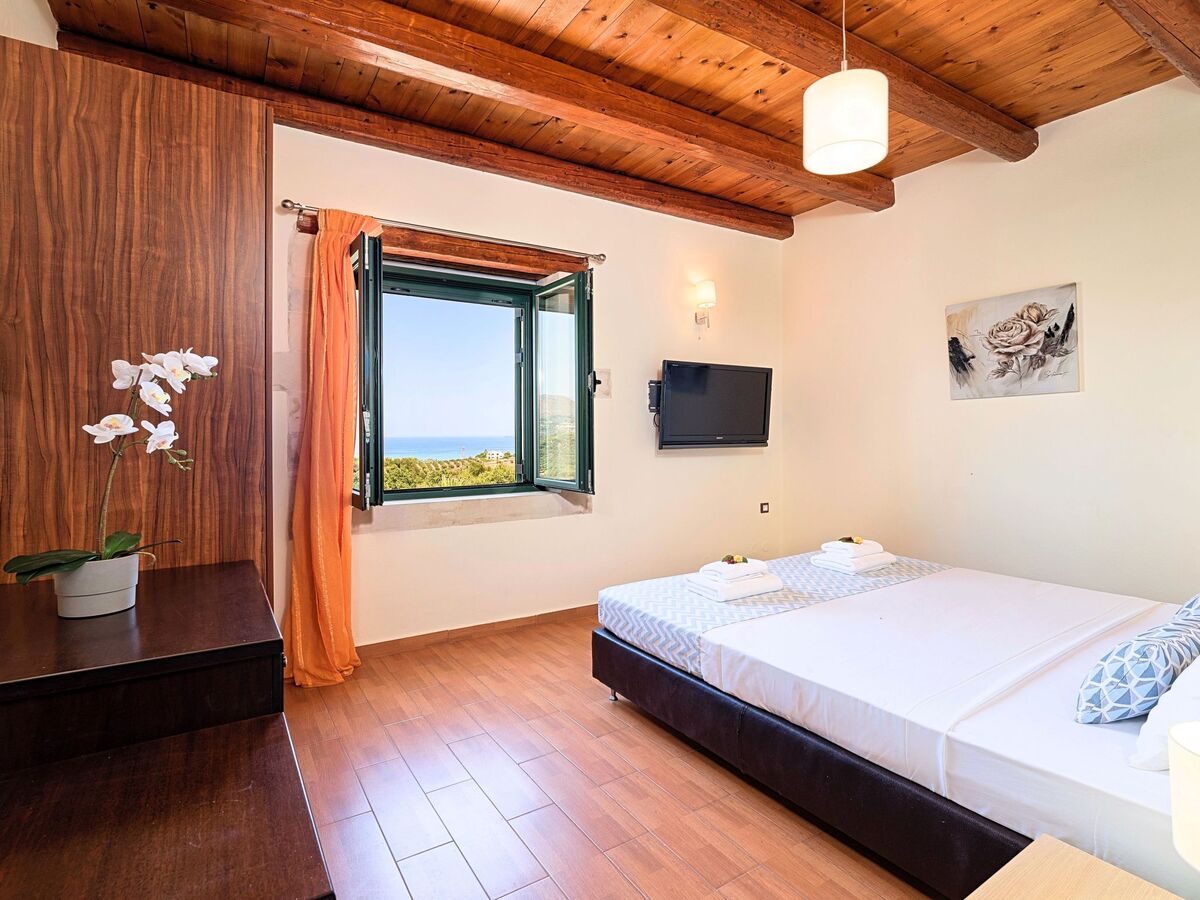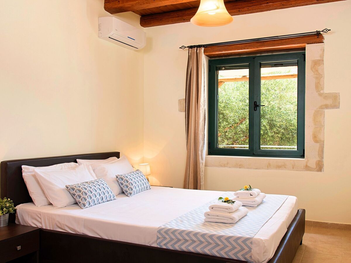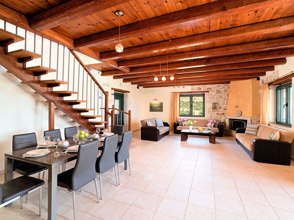 The interior is spacious and very bright while maintaining a cozy feel.Enjoy a magnificent pool area with splendid views of the Aegean Sea and the skyline of Crete.The villa affords privacy blended with sumptuous comfort set amidst a rural setting.Villa Stelios can accommodate up to 12 guests (10 in the bedrooms) and 2 more at the sofas in living room.The villa offers 5 Bedrooms, 3 Bathrooms, 220sqm Living Area, 6.000sqm plot surface, private pool 60sqm