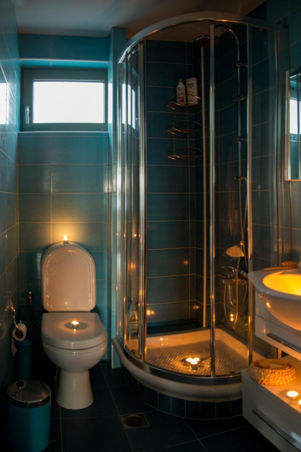 The ground floor boasts a spacious bedroom with two comfortable beds and a shower bathroom.