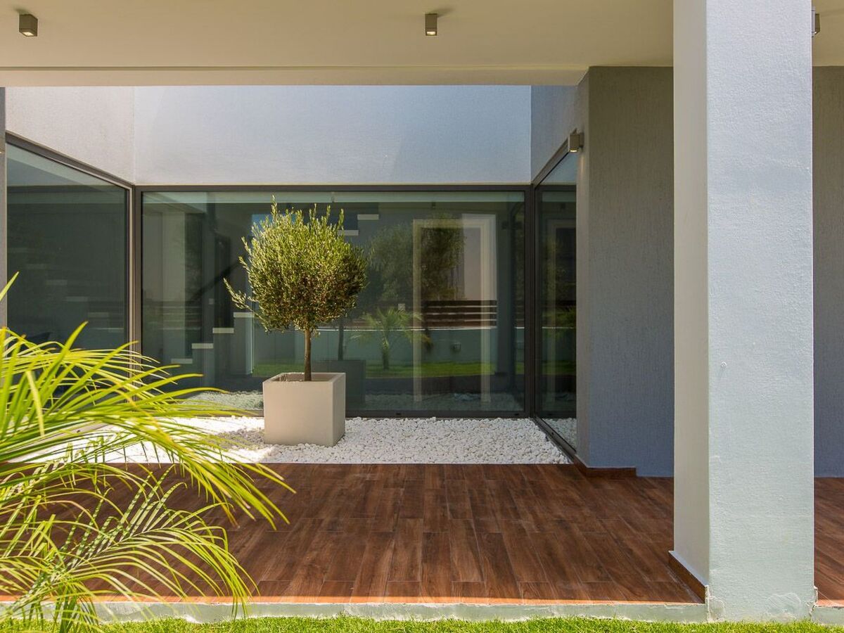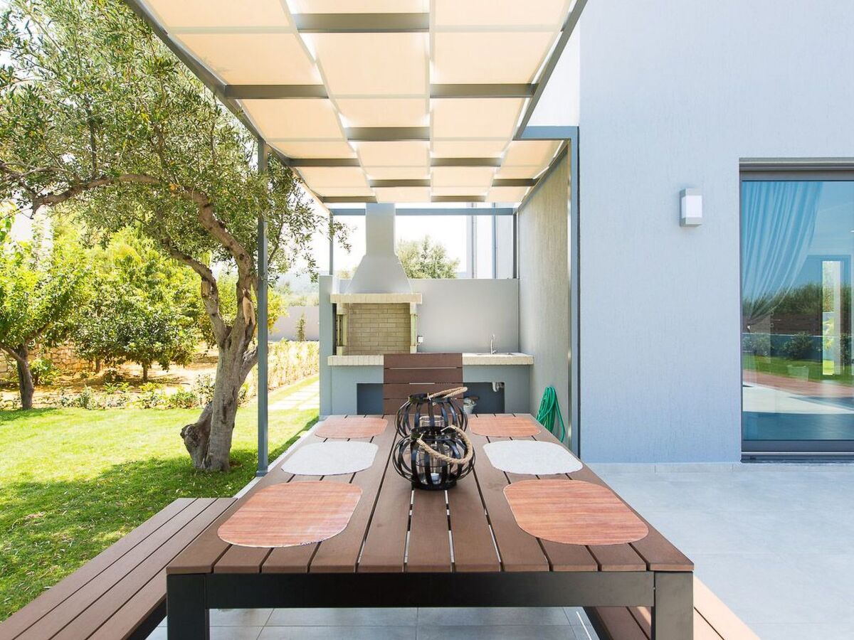 In the generous garden there is a dining area with a traditional stone grill.