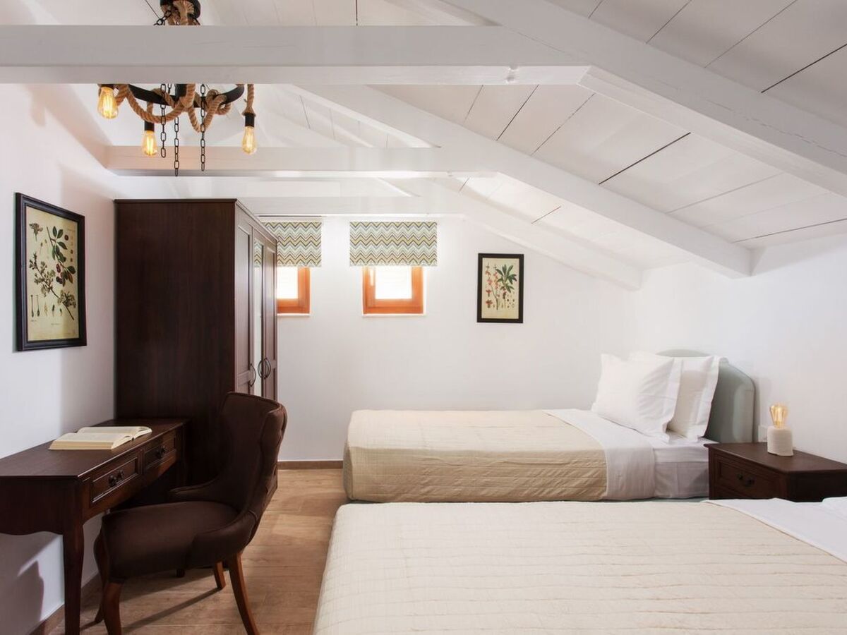 In the attic there is the third bedroom with twin beds and its own large bathroom.