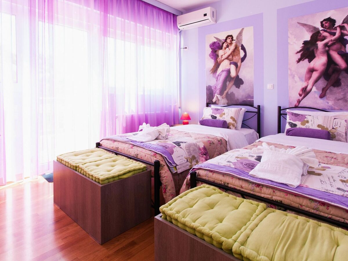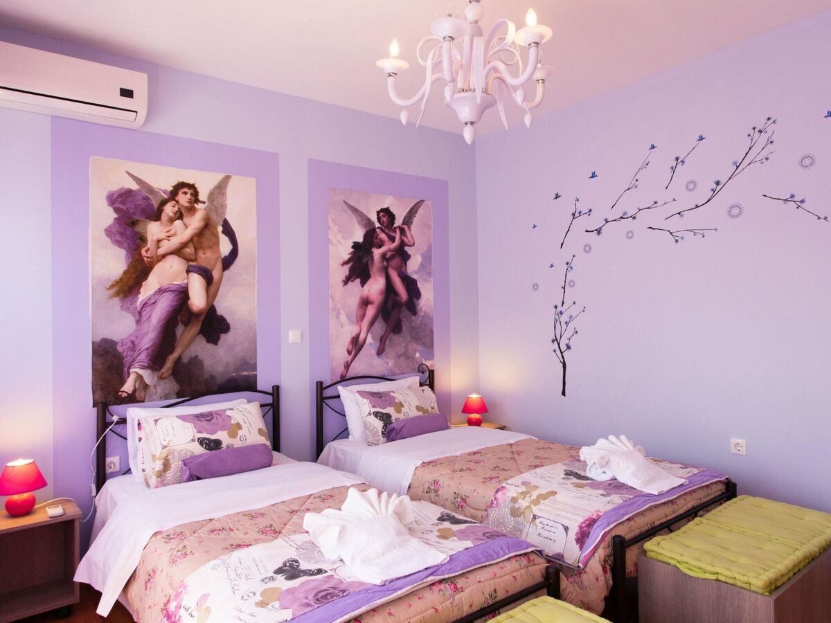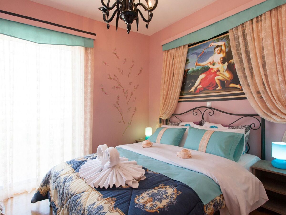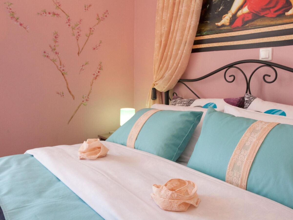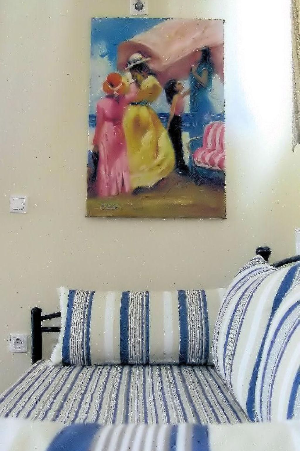 You will feel at home straight away in the three individually decorated bedrooms: the wallpaper features motifs from Greek mythology and the beds have cotton bed linen and day throws.