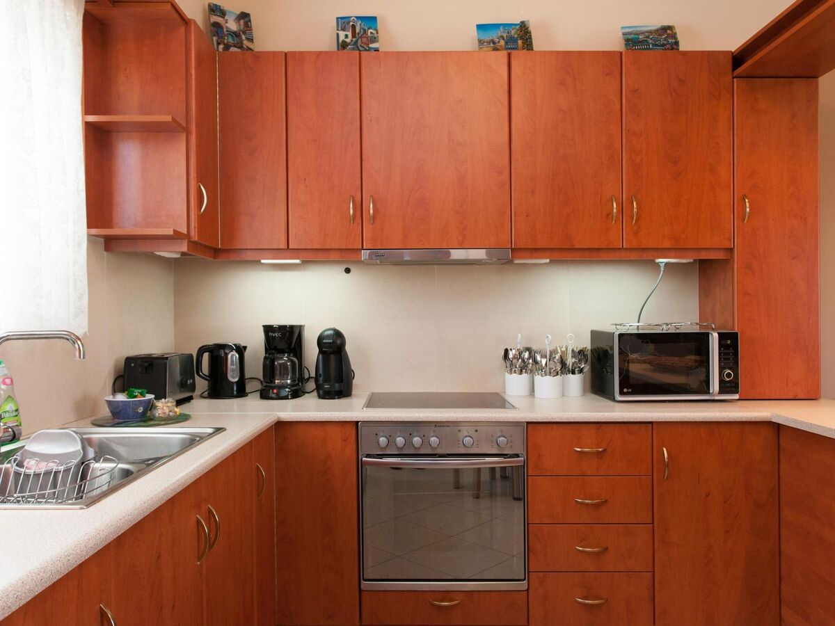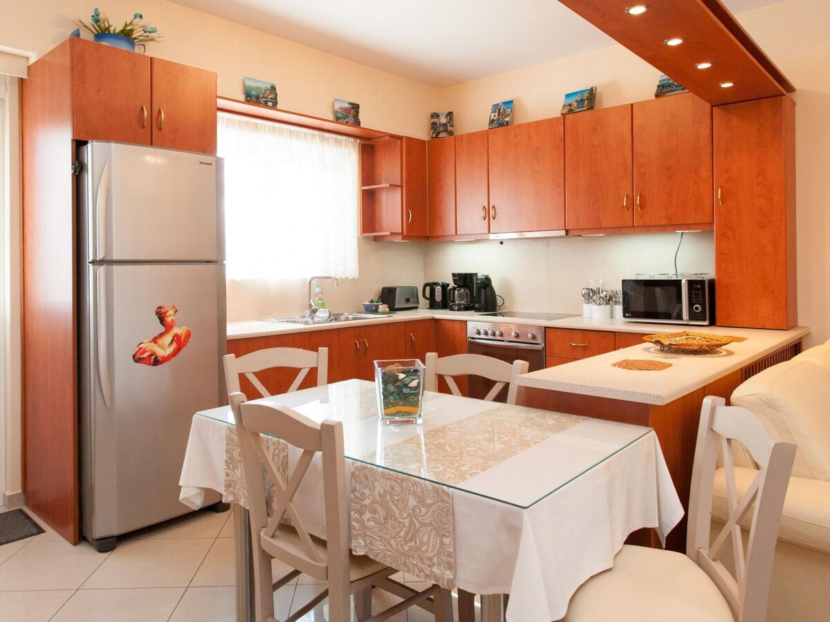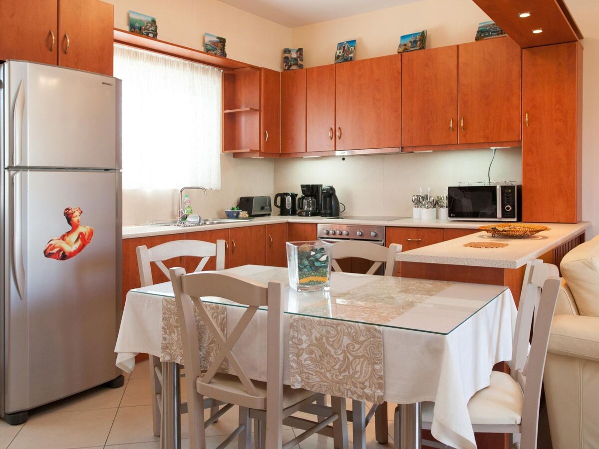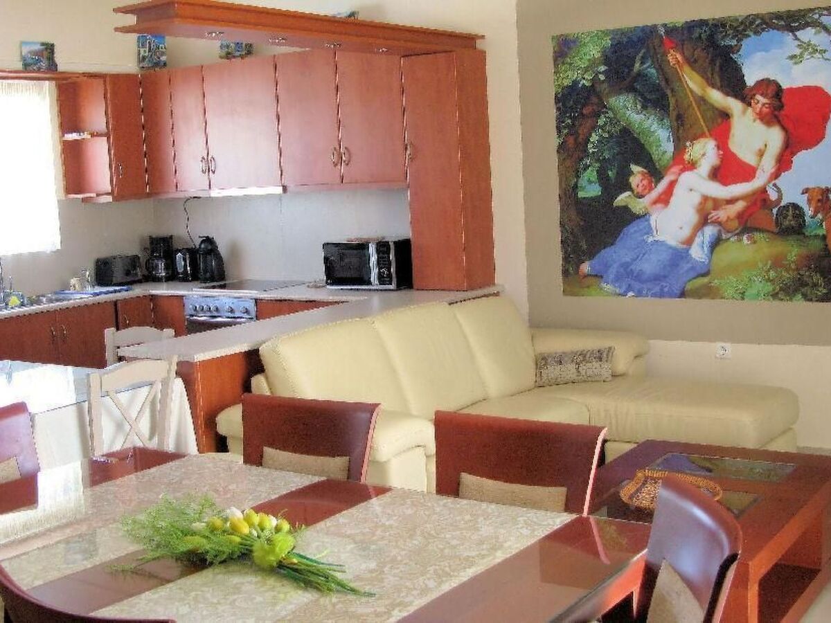 The open kitchen with a breakfast table is fully-equipped and you can cook your favourite dishes there.
