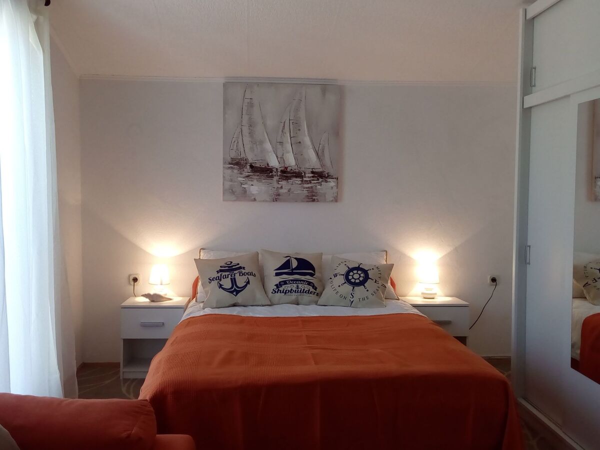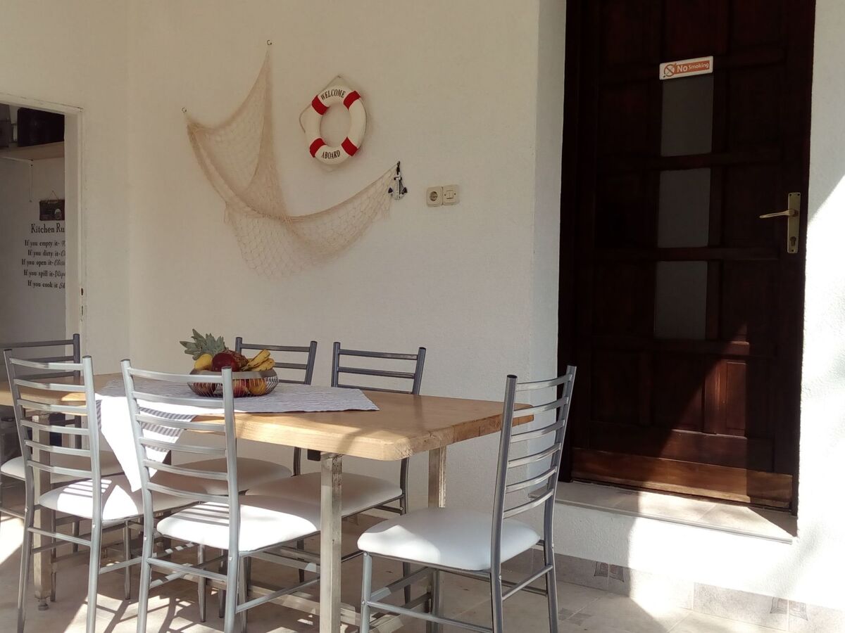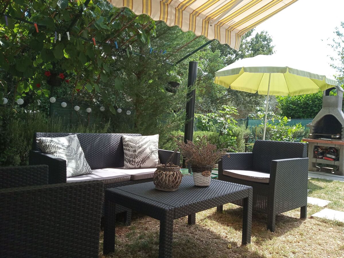 The house has a fully-equipped kitchen with direct access to the terrace with a dining space, a living room with a sofa bed and three bedrooms with a double bed and a sofa bed.