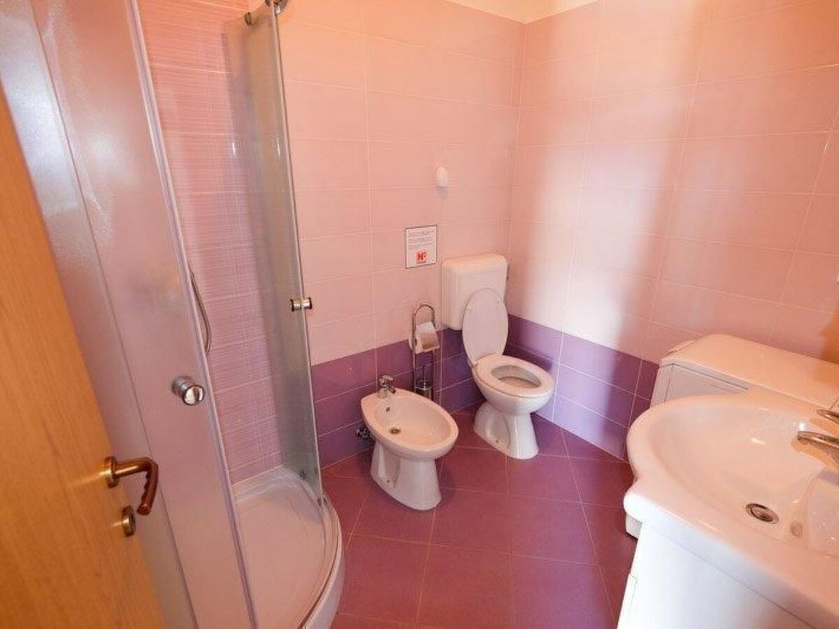 The bathroom on the ground floor has a shower, washbasin, WC and washing machine.