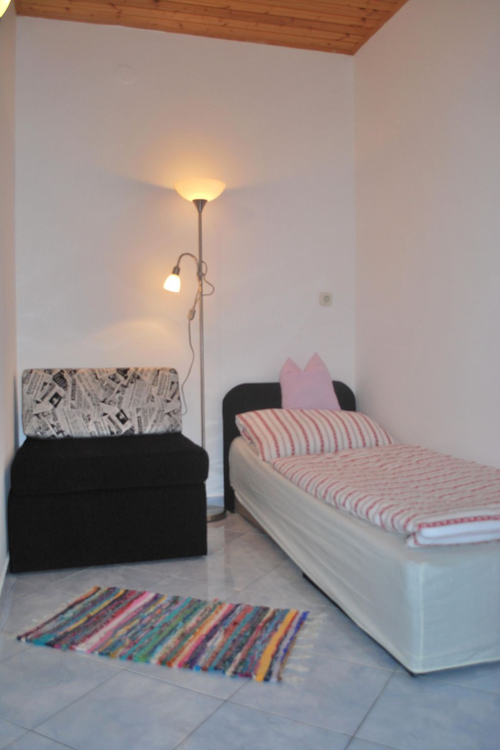 The first bedroom is furnished with a double bed (1.60 m x 2.00 m) (baby cot also possible) and the second bedroom has two single beds (each 0.80 m x 2.00 m).