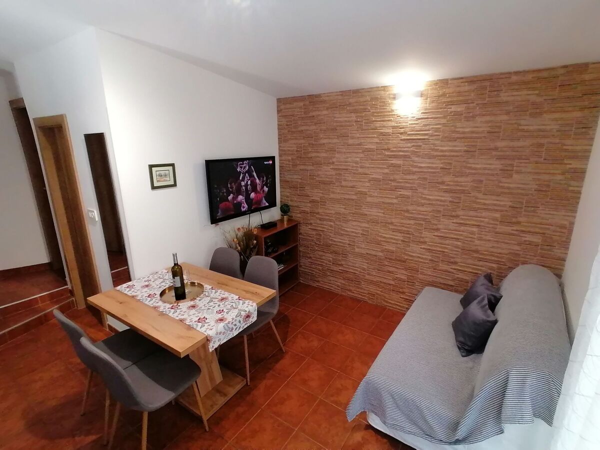 It is around 40m2 in size and it has fully equipped kitchen with oven, coffee machine, microwave and dishwasher.