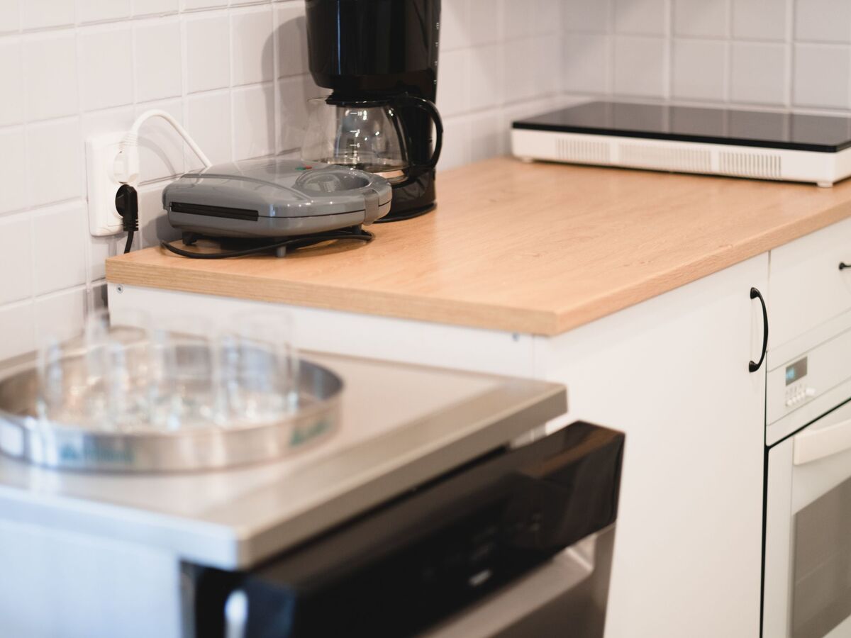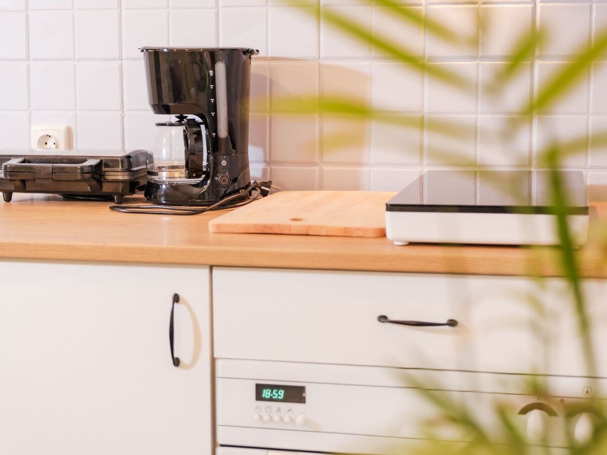 Fully equiped kitchen featuring dishwasher, toaster, owen, juicer and drip coffee maschine.