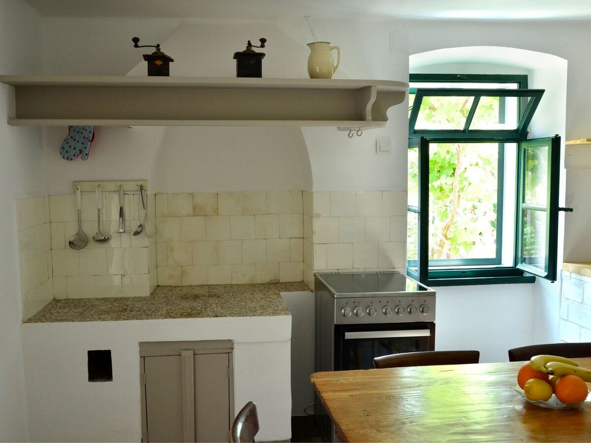 From the two bedrooms on the upper floor, you can look directly over the vine leaves, rosemary and the village roofs down to the sea.