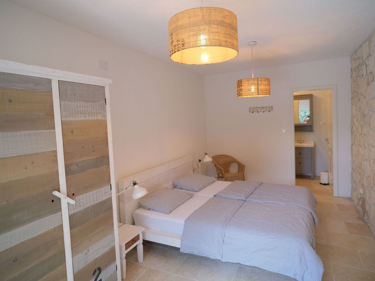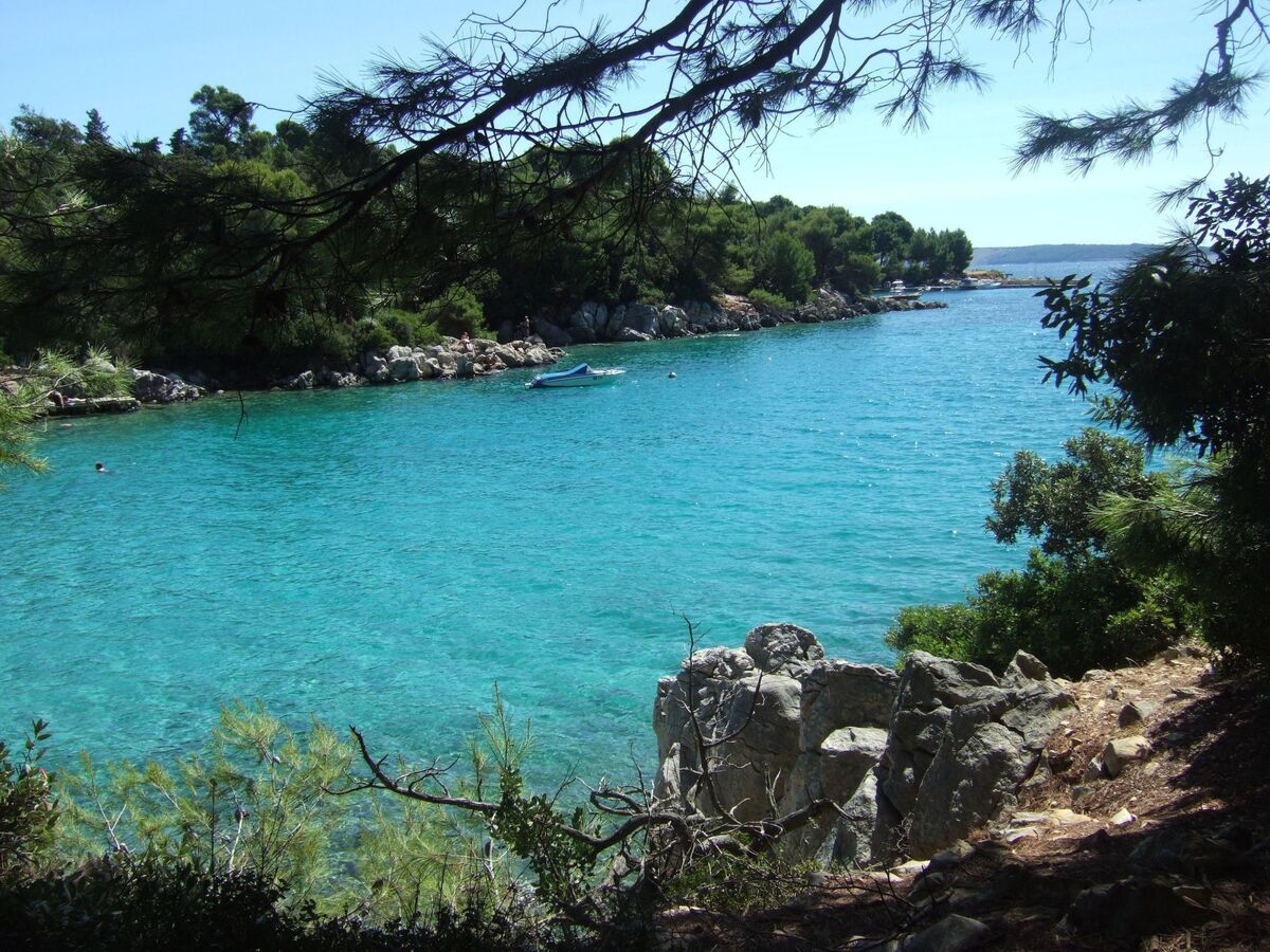 The nearest beach is the small sandy beach "Mel" in Kampor, about two kilometres away.