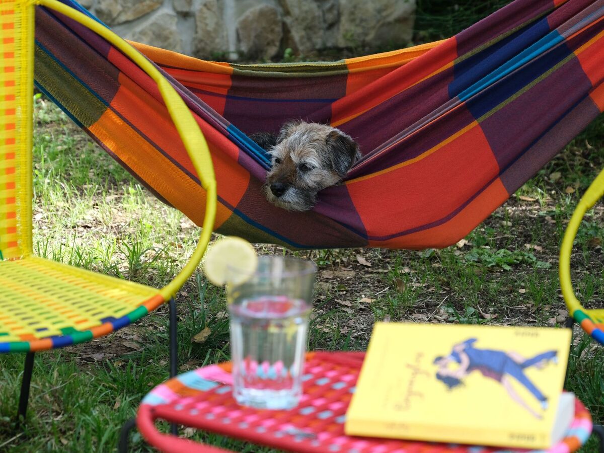 There is also a sheltered courtyard with sun loungers and a hammock.