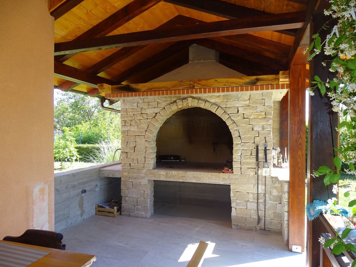 The highlight of the garden is undoubtedly the large grill and outdoor cooking area, inviting you to savor delightful barbecue meals.