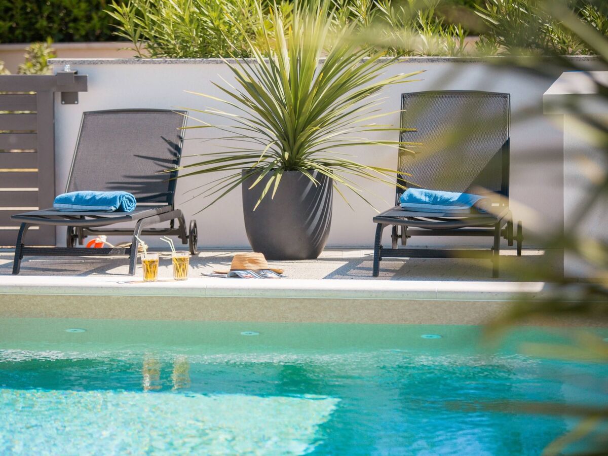 The fully enclosed, 200 m2 large courtyard of the villa features a lovely swimming pool (7,5 x 4 ) surrounded by sun loungers where you can enjoy a refreshing swim at any time of day or night.