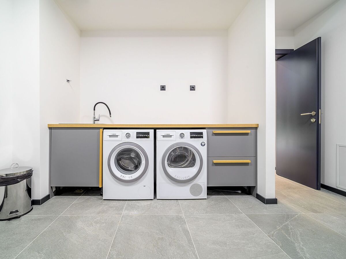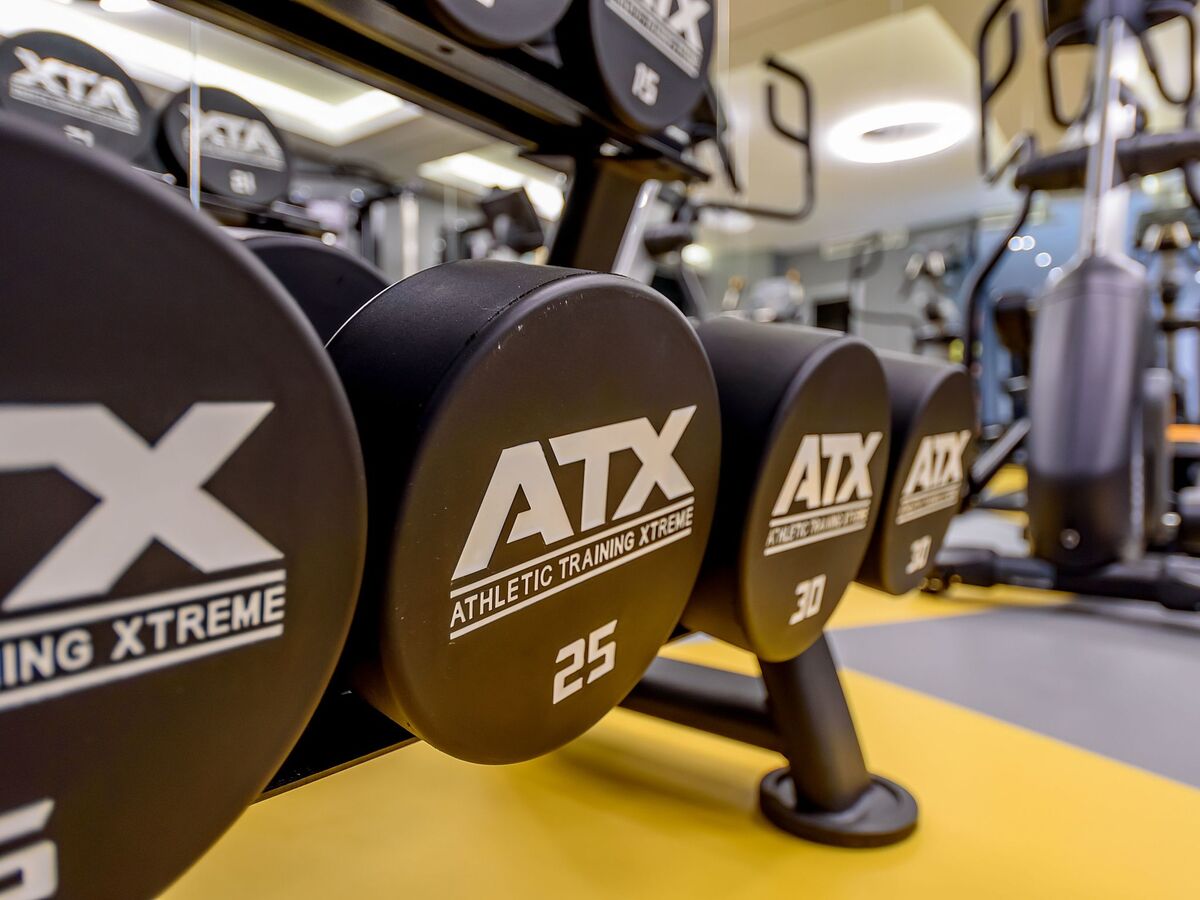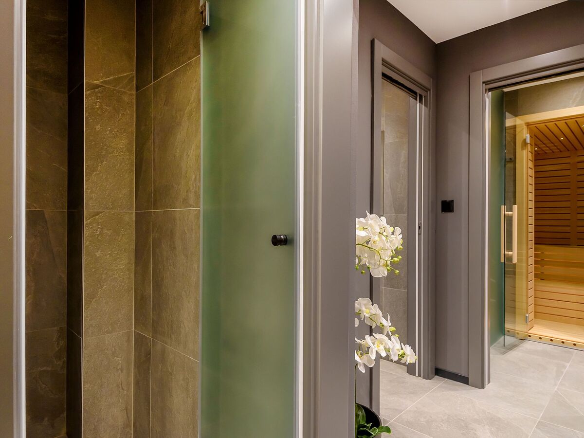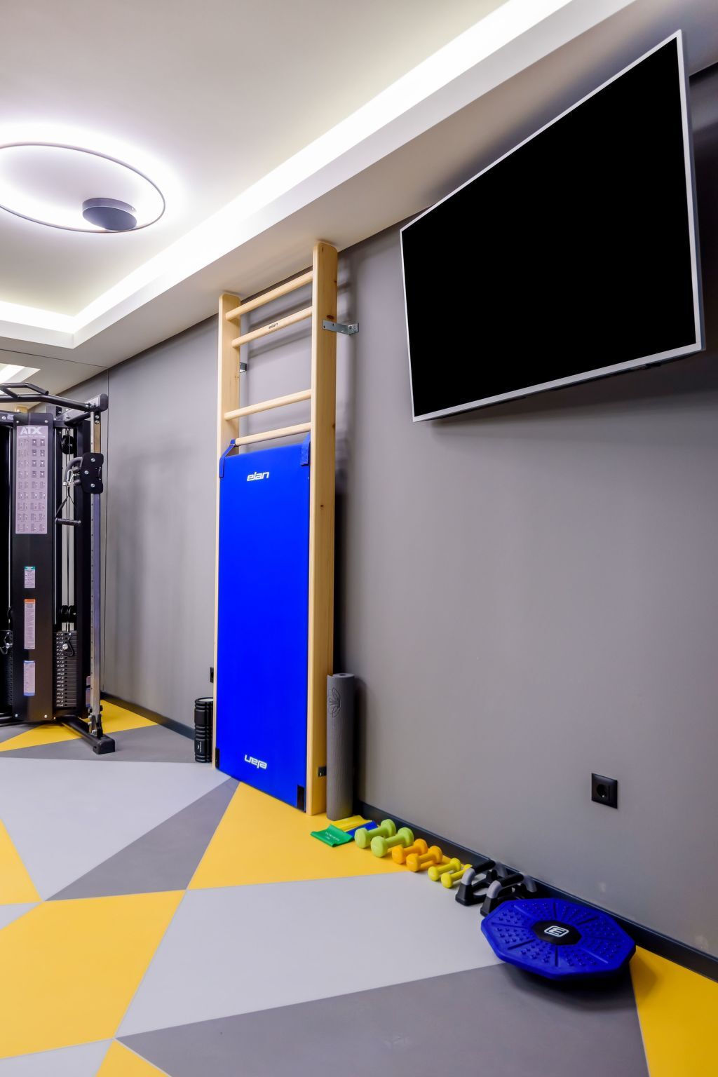 a well equipped gym area, sauna with shower, toilet, and laundry facilities.