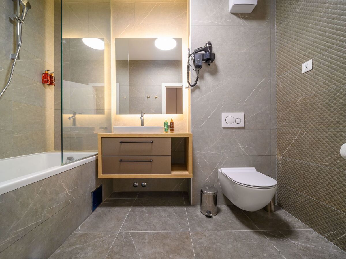 an suite bathroom and comfortable beds, perfect for relaxation and rest.