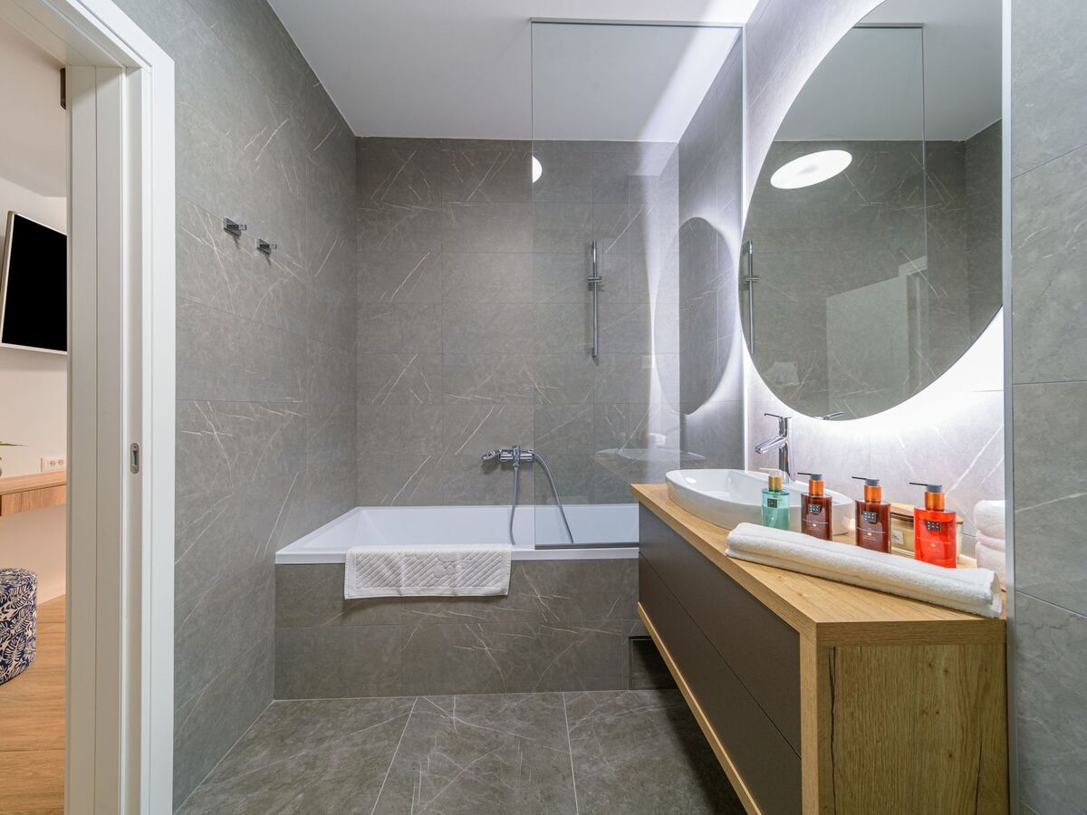 Living room is connected to the terrace by large glass walls, so you can enjoy the views while resting on our custom made, comfortable sofas.