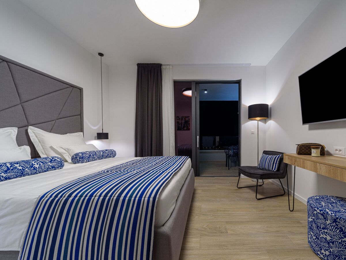 The sun-caressed terrace is equipped with sunbeds, so you can enjoy the warm Mediterranean sunshine.