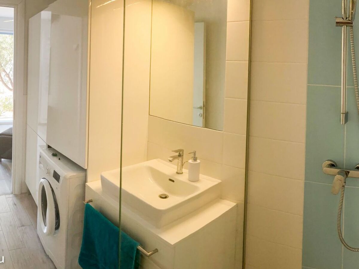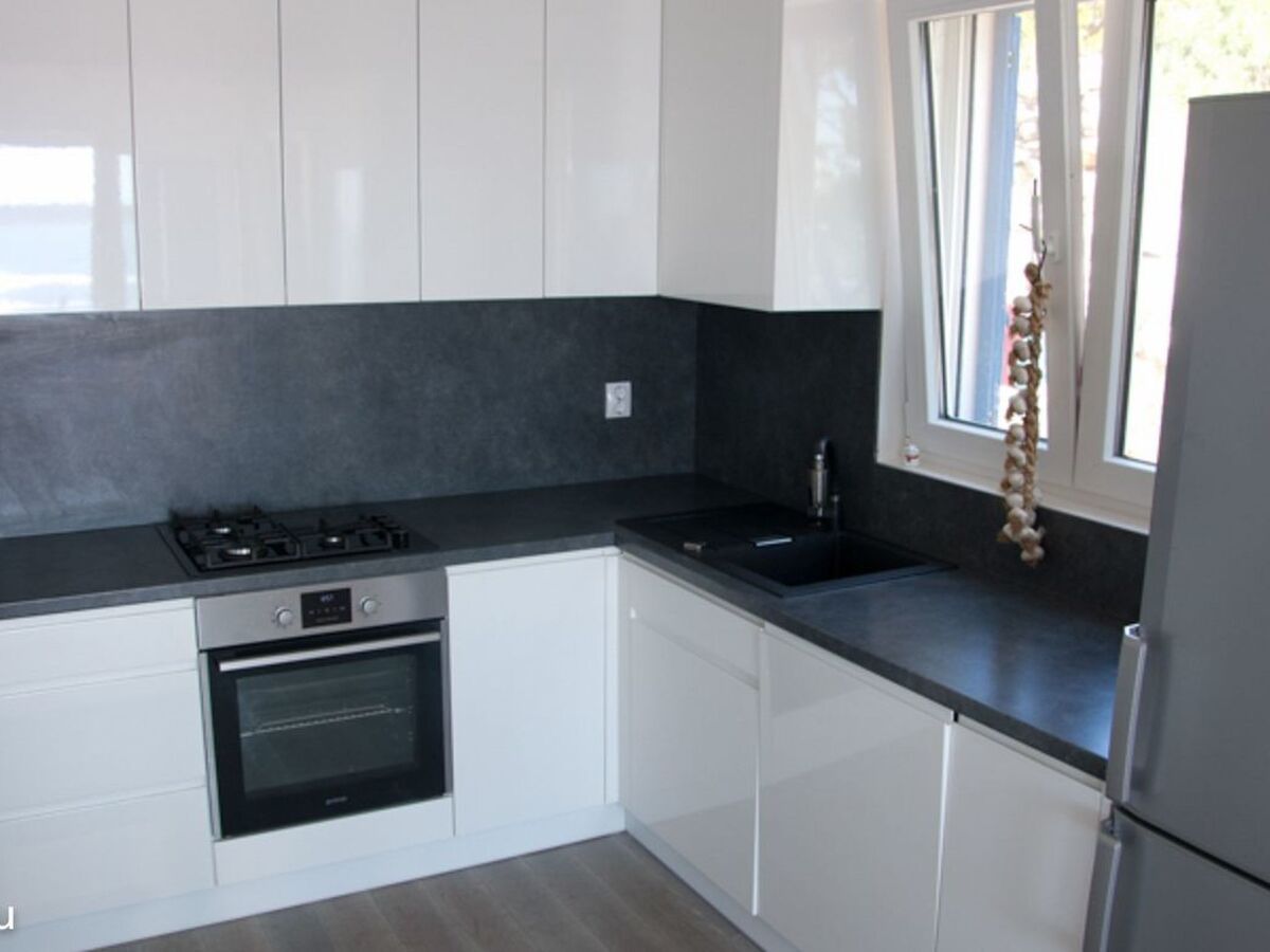 Villa Blu, lower apartment (60 m2): 1 bedroom (2 people 1 x large double bed with the possibility of a pull-out bed), living room with open-plan kitchen (oven, hob with electric and gas hobs, fridge, freezer), 1 WC, 1 bathroom with shower, washing machine, ceiling fans, wooden floors.