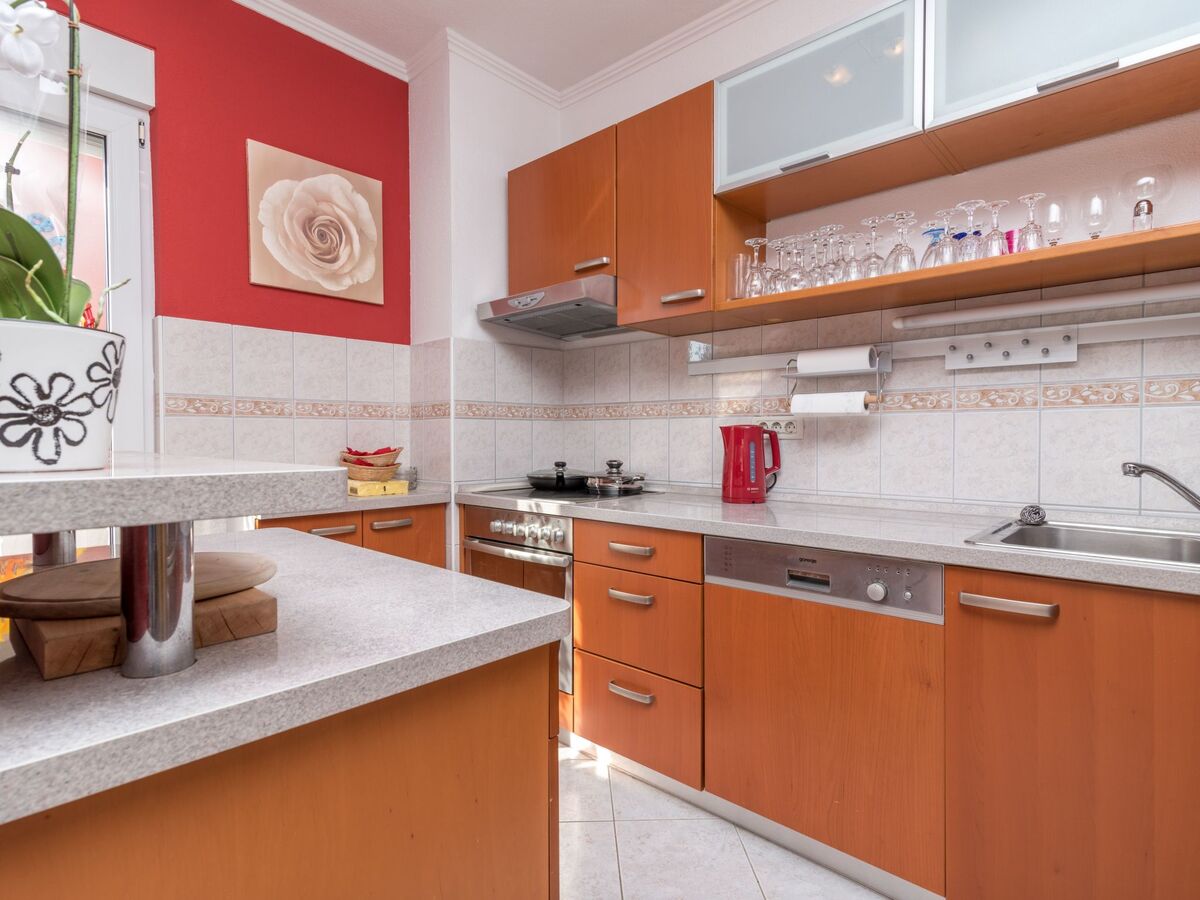 Kitchen amenities: Kitchen cupboards with built-in dish washer, refrigerator, electric oven and glass-ceramic stove, dining table for 8 persons, dishes, glasses, cooking utensils,microwave , blender, toaster, nespresso machine - fully functional Leisure amenities: TV with home cinema system, free wireless internet connection, sofa ,air-conditioning system in every room and terrace with a beautiful view, table for 8 persons.