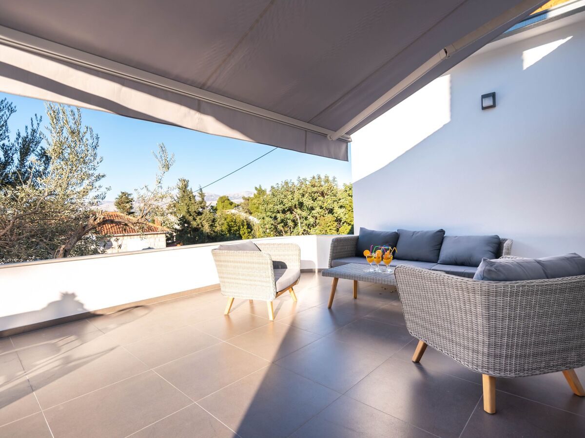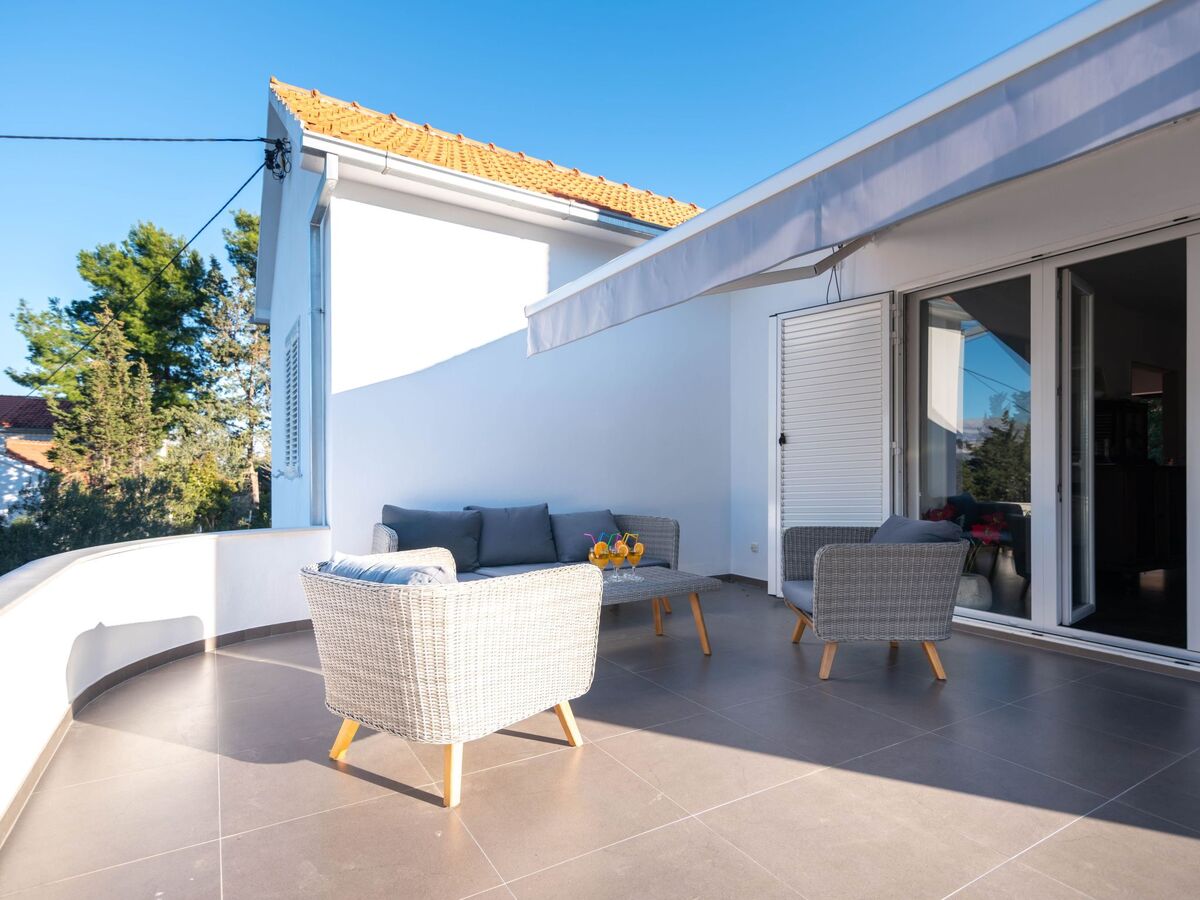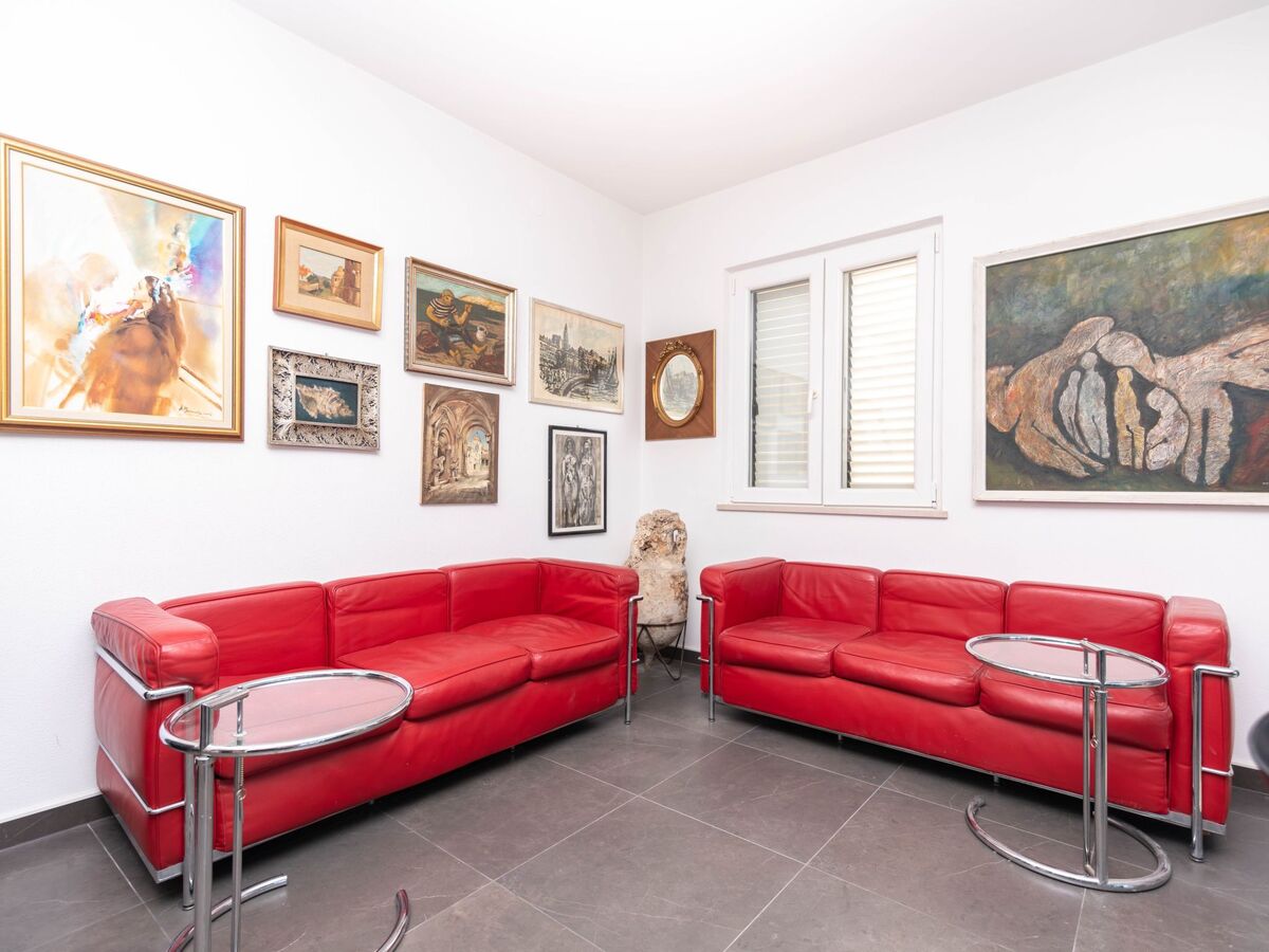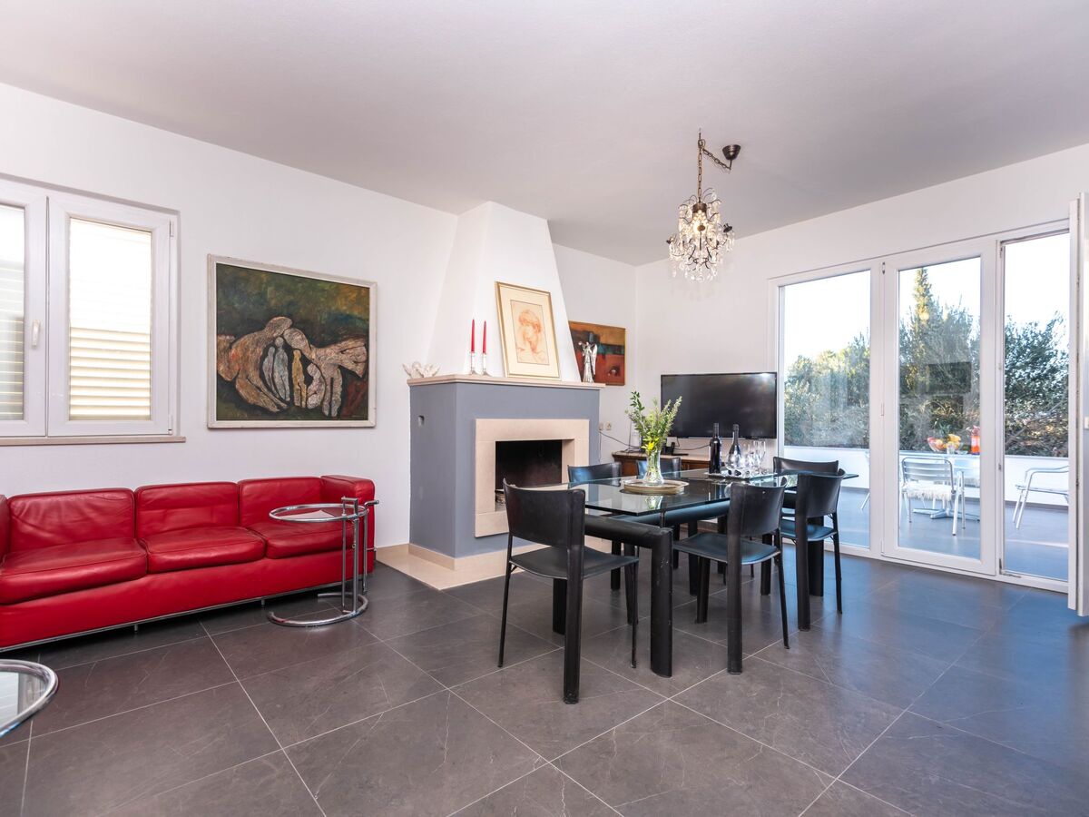 From living room you can exit to big sunny terrace of some 80^m on which there are two seating sets and from booth of the you can observe sea, pool, pine tress and totally relax.