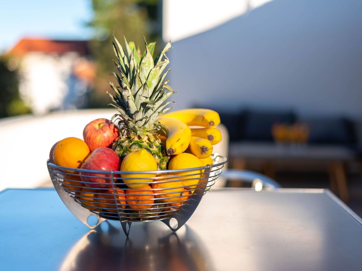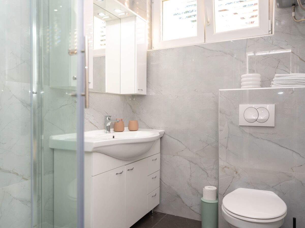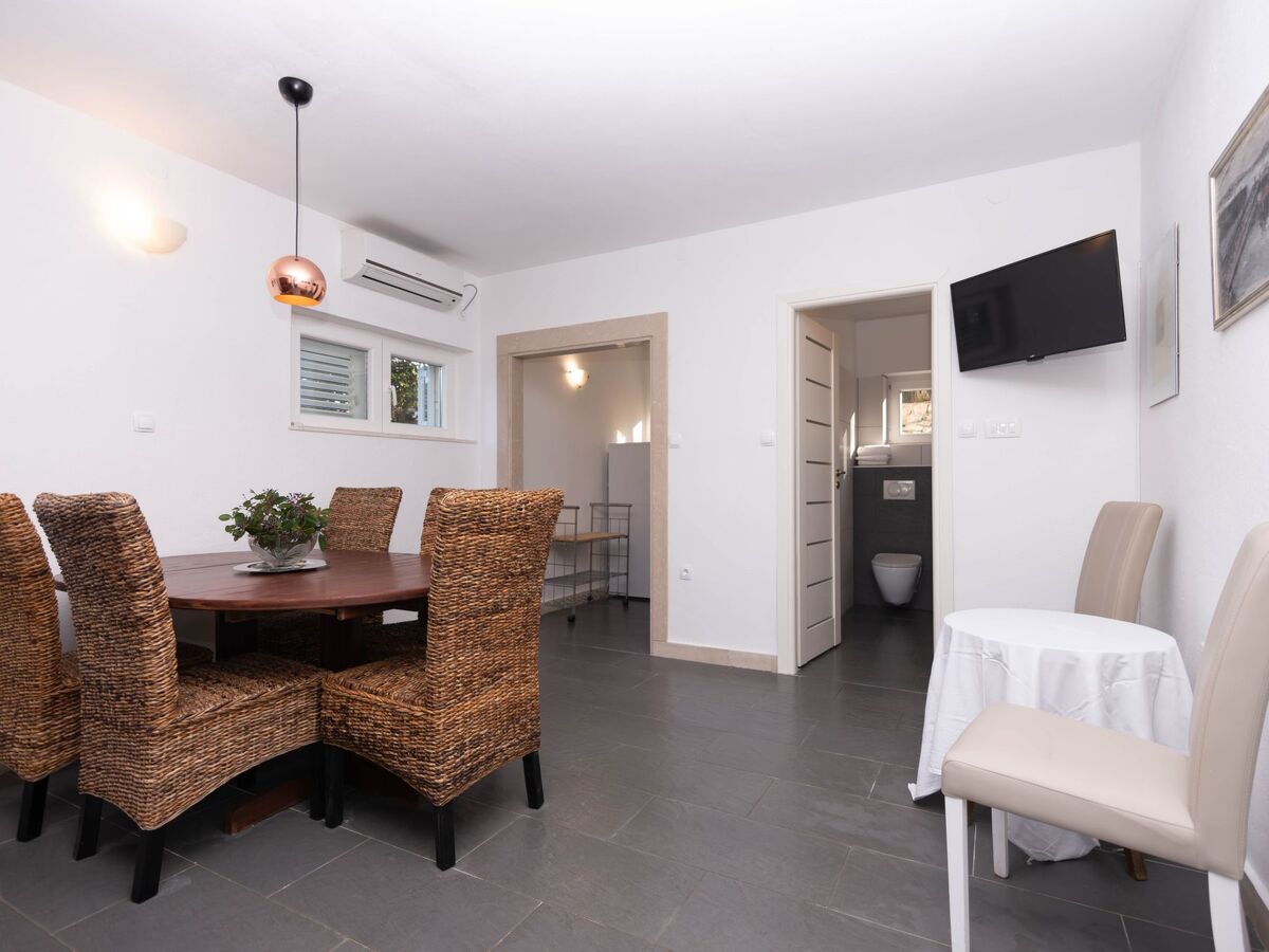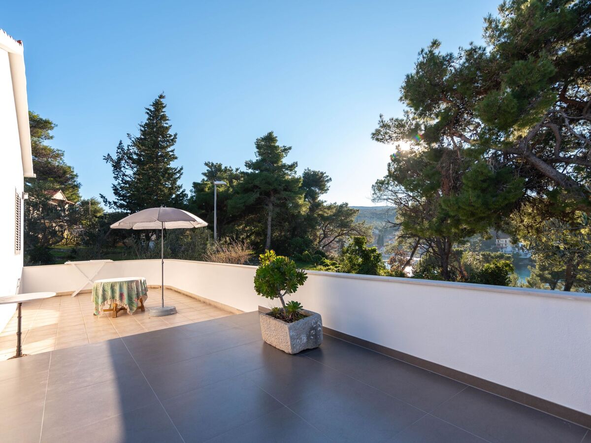 From living room you can exit to big sunny terrace of some 80^m on which there are two seating sets and from booth of the you can observe sea, pool, pine tress and totally relax.