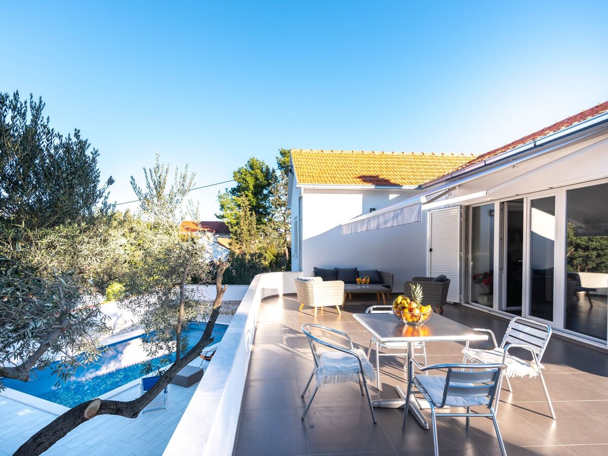Villa has a large pool & which is surrounded with stone paved yard on which there is a fireplace, table with chairs under the olive tree, an outdoor shower and sunbeds.
