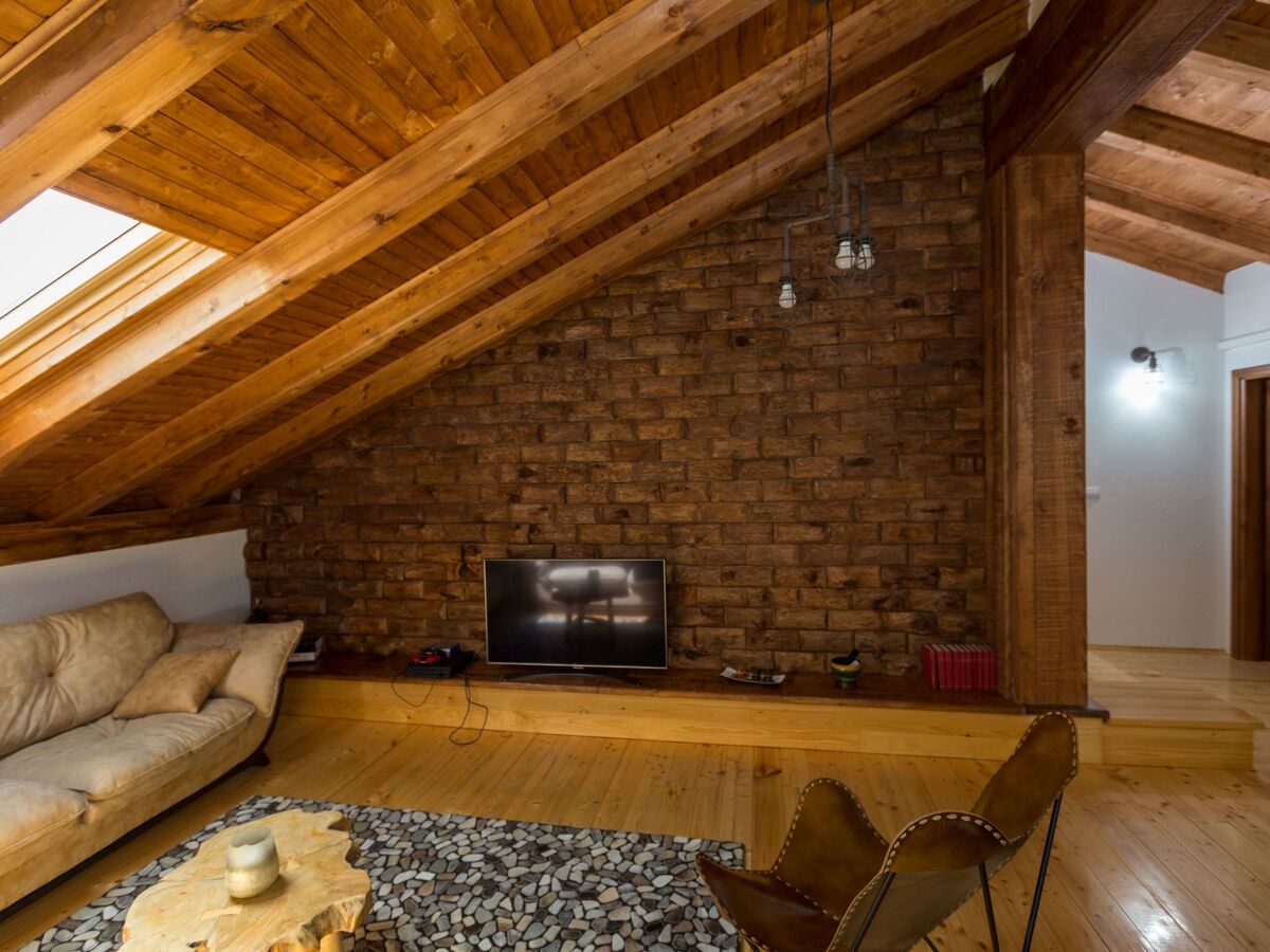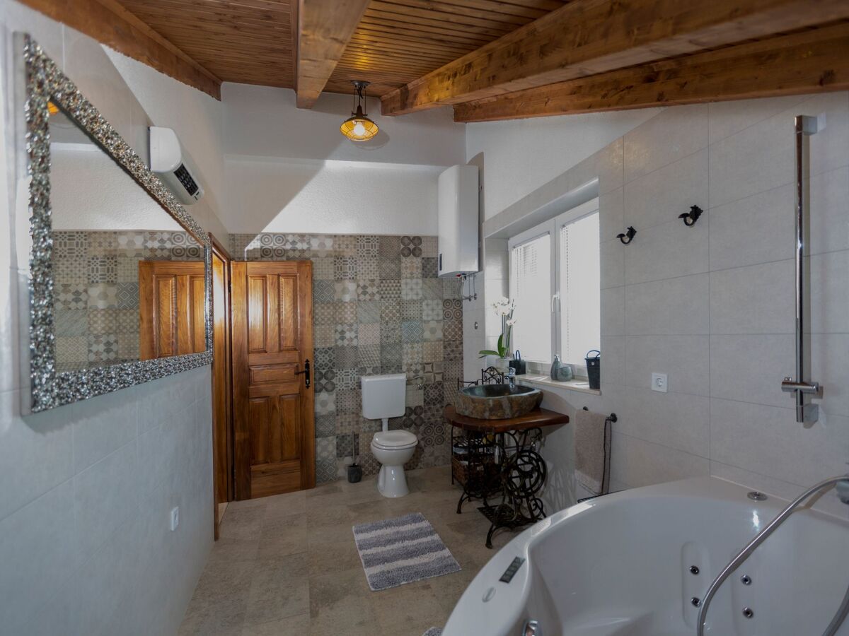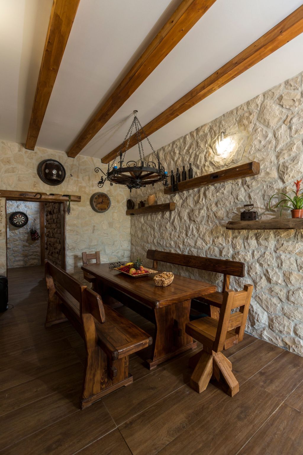 Ground floor is 80 m2 large living /party room (konoba) with stone/wood material interior.