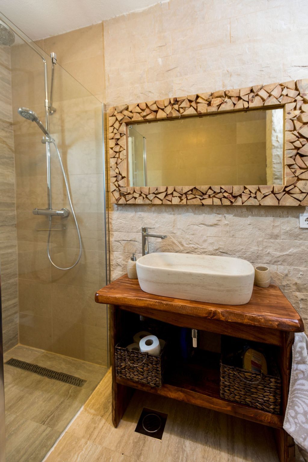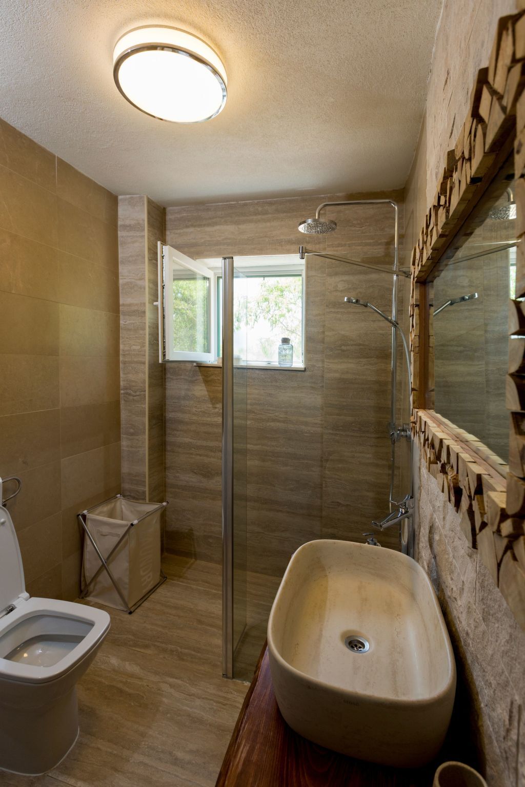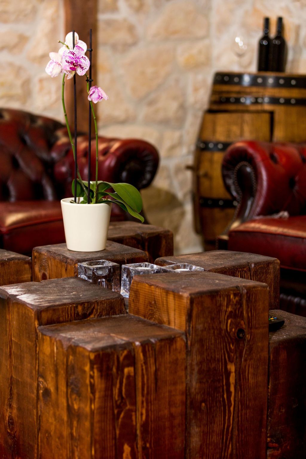 Ground floor is 80 m2 large living /party room (konoba) with stone/wood material interior.